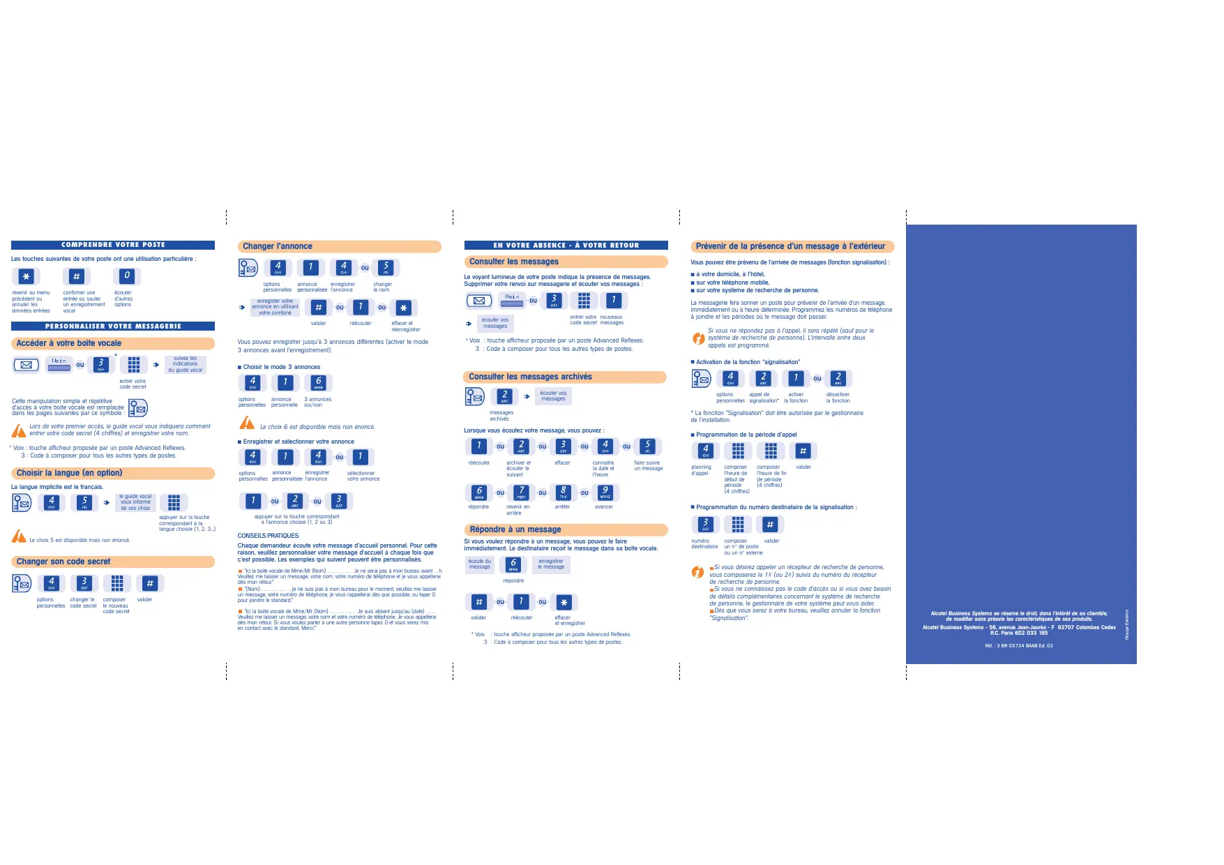Alcatel Business Systems - 56, avenue Jean-Jaurès - F 92707 Colombes Cedex vérifier la bonne réception