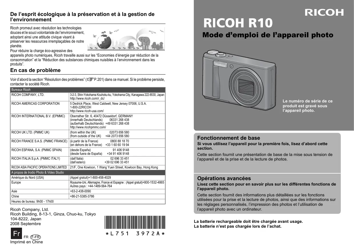 Retrouvez gratuitement la notice de l'appareil R10 RICOH au format PDF.