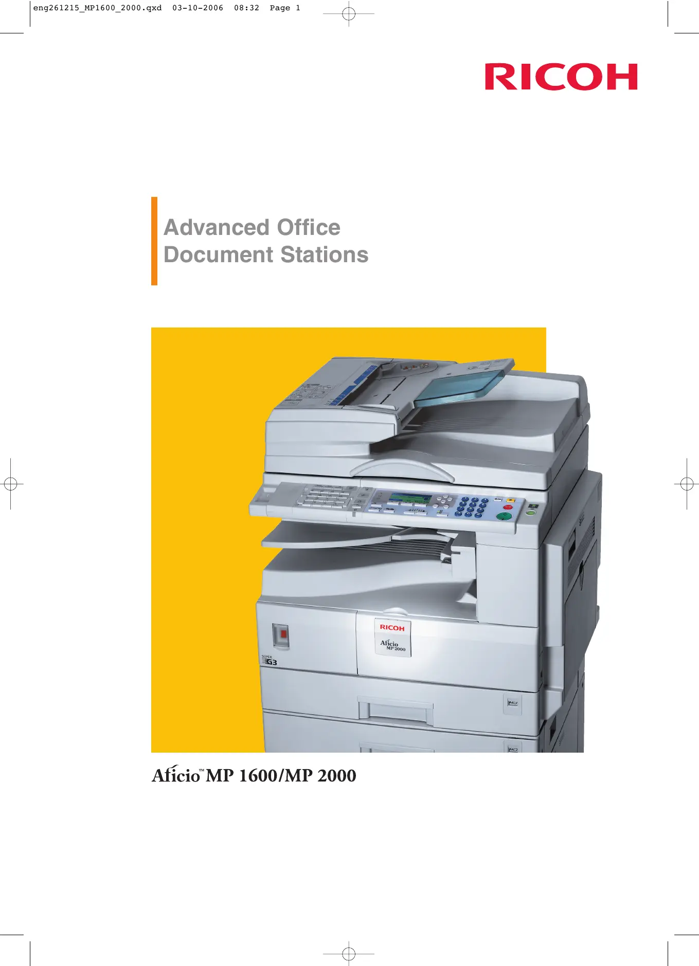 Téléchargez la notice de votre Photocopieur au format PDF gratuitement ! Retrouvez votre notice MP1600 - RICOH et reprennez votre appareil électronique en main. Sur cette page sont publiés tous les documents nécessaires à l'utilisation de votre appareil MP1600 de la marque RICOH.
