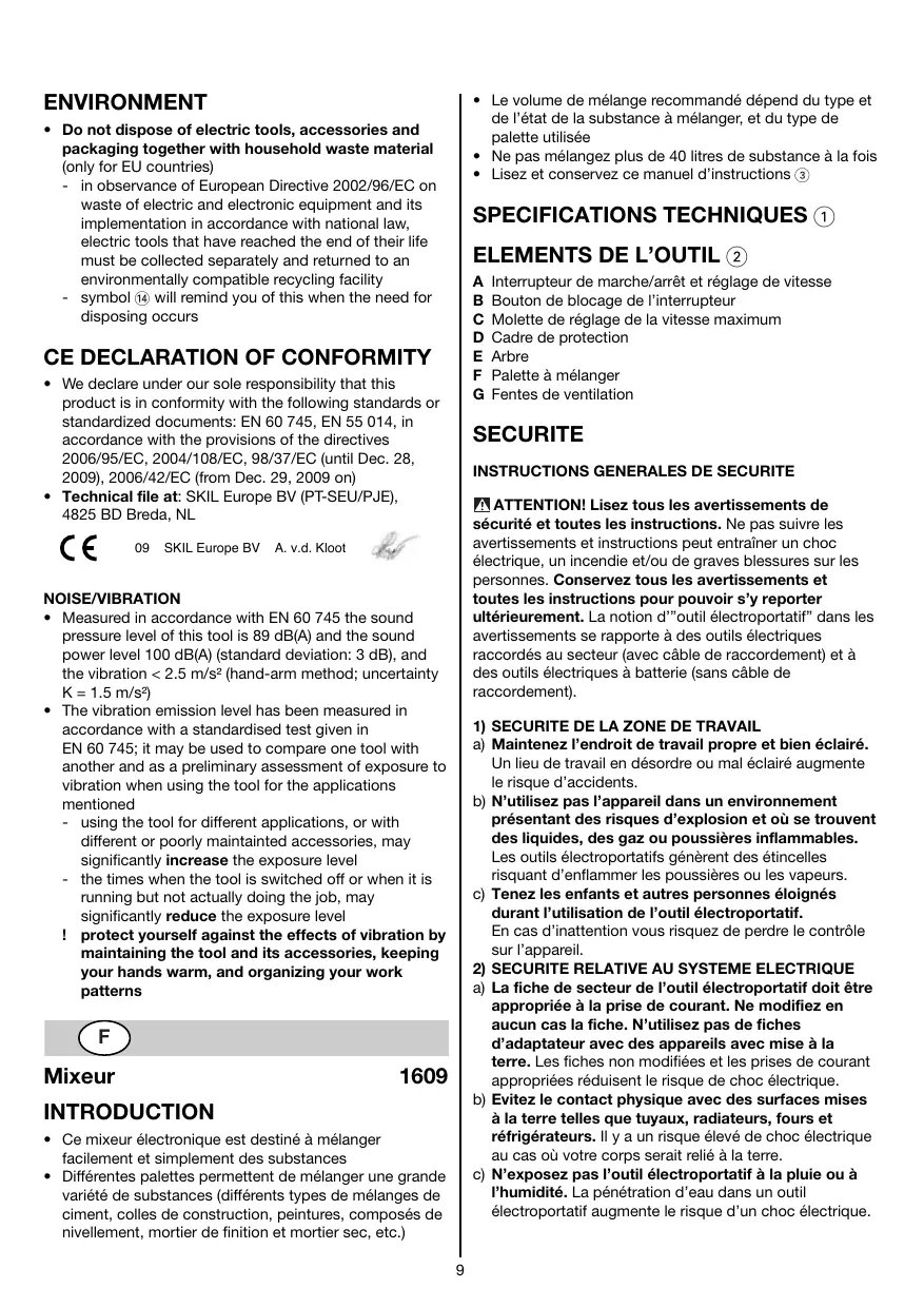 SKIL Europe BV A. v.d. Kloot BRUIT/VIBRATION