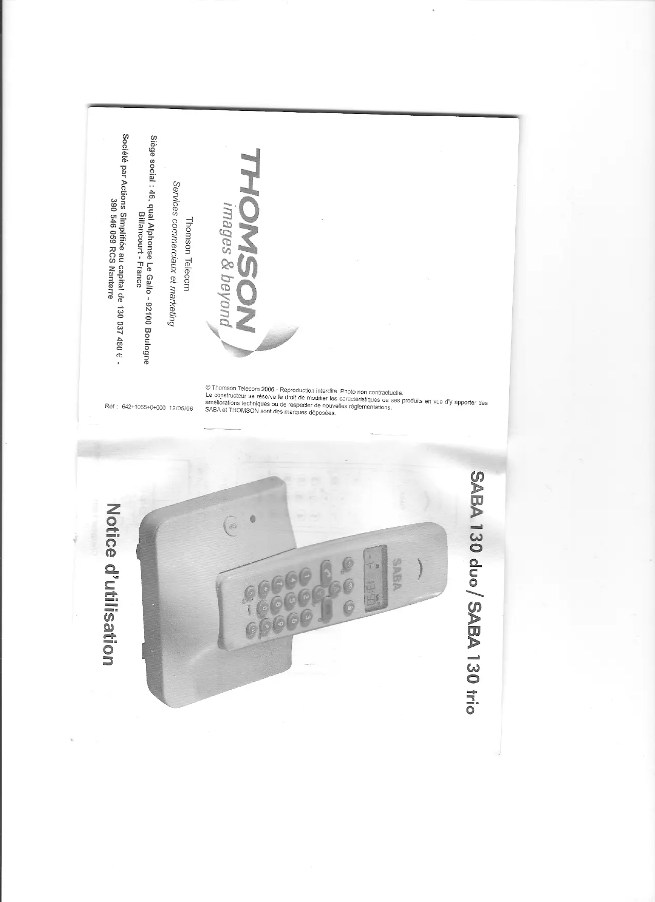 130 DUO - Téléphone sans fil SABA - Notice d'utilisation et mode d'emploi gratuit