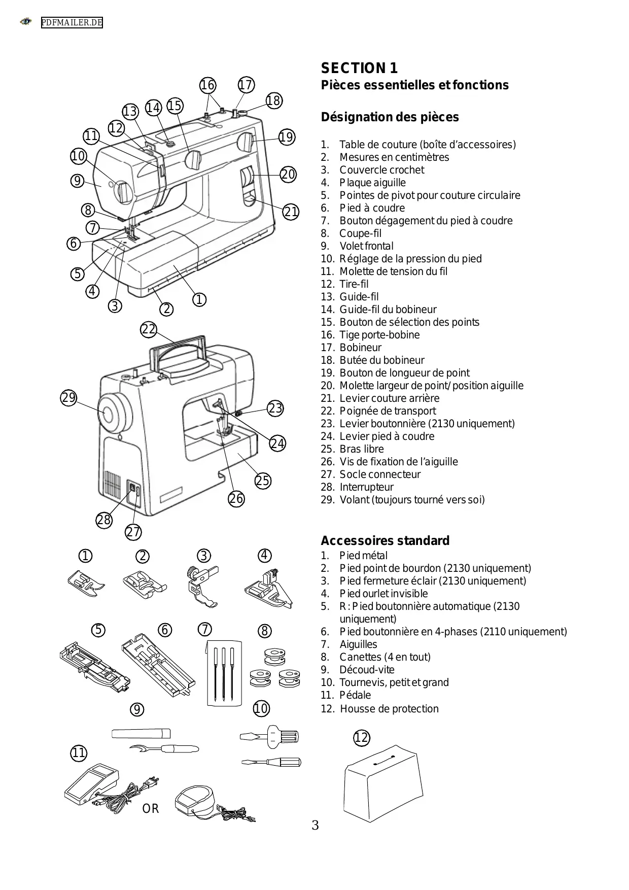 PDFMAILER.DE TABLE DES MATIÈRES SECTION I – Pièces essentielles et fonctions