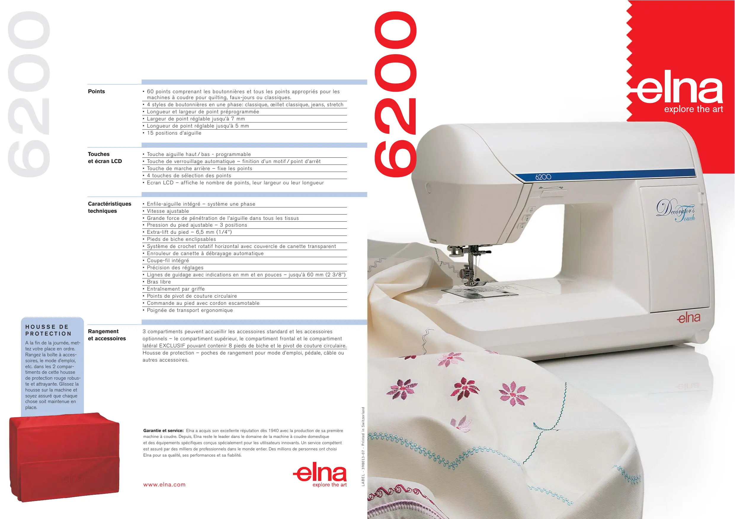 | Type de produit | Machine à coudre ELNA 6200 |