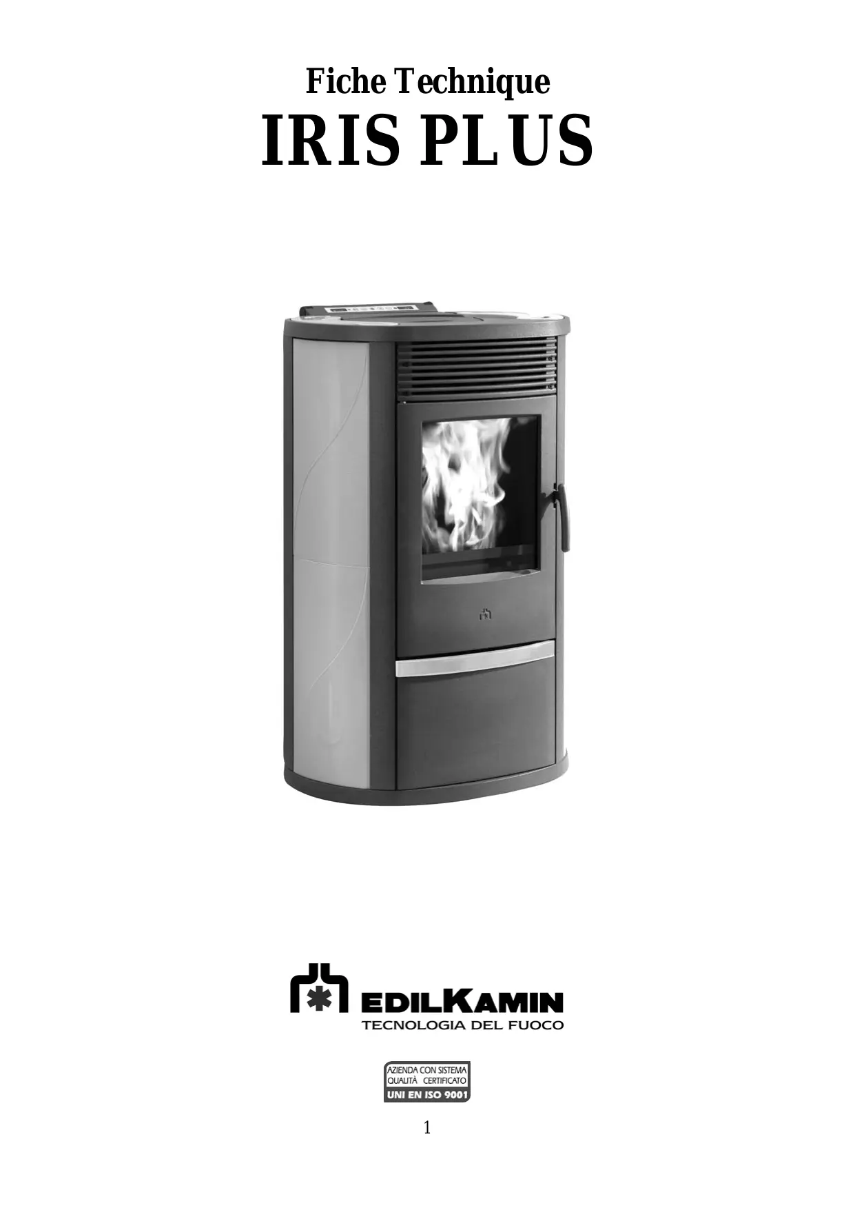 NORMES ET DÉCLARATIONS DE CONFORMITÉ C.E. Le poêle IRIS PLUS a obtenu les certifications selon les normes prEN 14785 et CE 50165 La société EDILKAMIN déclare que le poêle IRIS PLUS est conforme aux suivantes normes pour le marquage CE Directive Européenne CEE 73/23 et amendement successif 93/68 CEE CEE 89/336 et amendements successifs 93/68 CEE 92/31 CEE 93/97 CEE 93/97 CEE Pour l’installation en Italie, faire référence à la norme UNI 10683/98 ou à ses modifications successives. Dans les autres Pays, se conformer aux lois et aux normes nationales à cet égard.