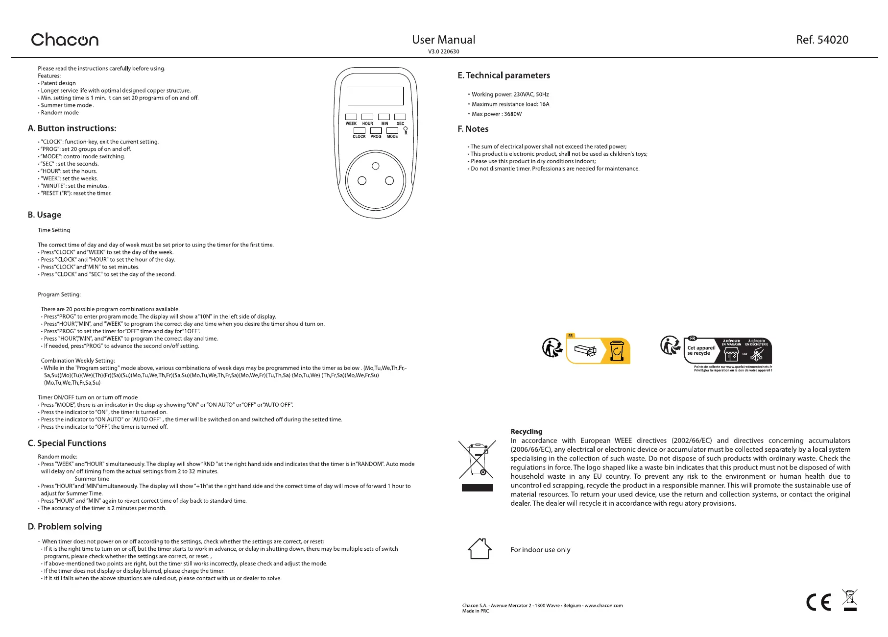 Retrouvez gratuitement la notice de l'appareil 54020 CHACON au format PDF.