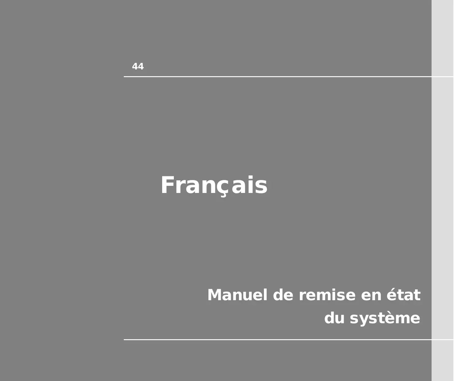 Manuel de remise en état du système Mise en route Ce Manuel de remise en état du système contient trois méthodes différentes pour utiliser la Fonction de remise en état du système. Elles sont :