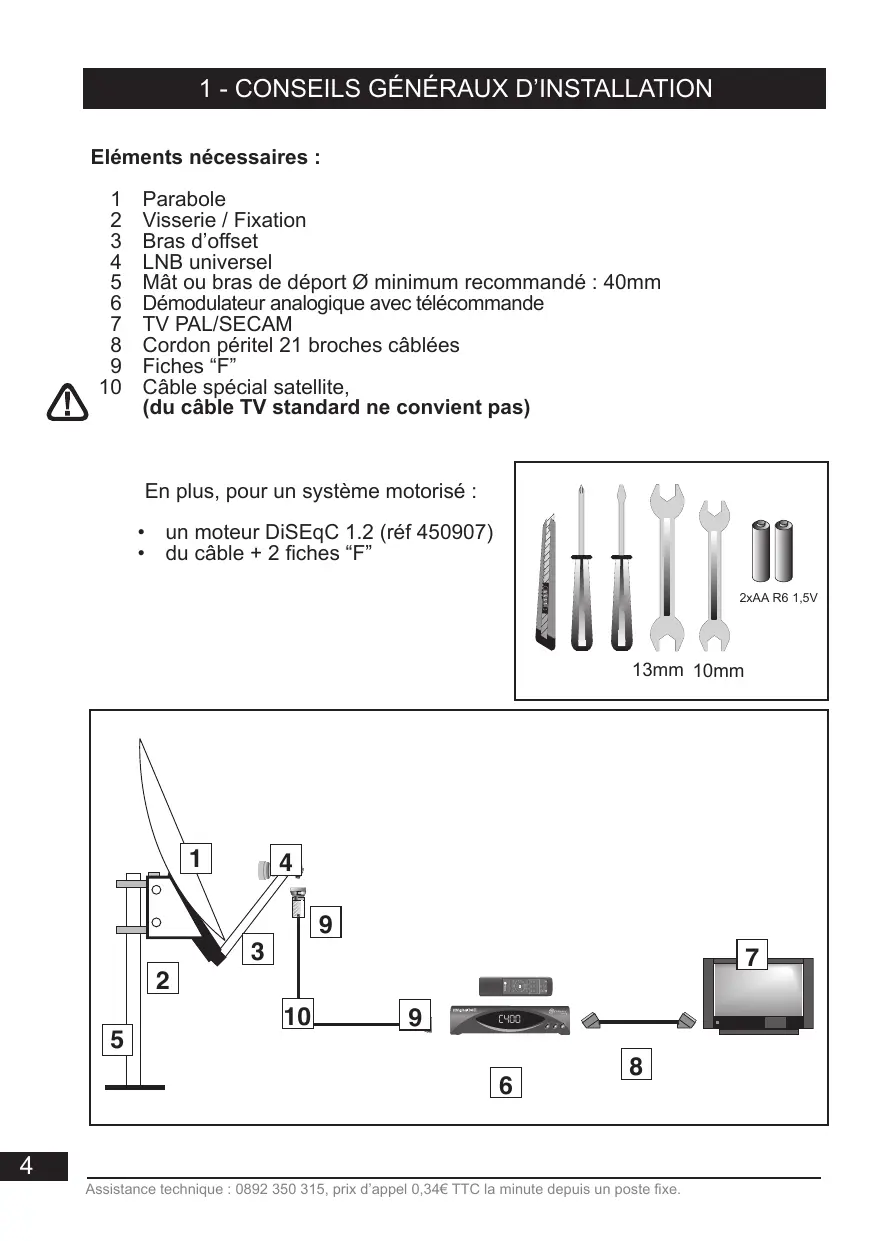 Assistance technique : 0892 350 315, prix d’appel 0,34€ TTC la minute depuis un poste fixe. B - Eléments et outils nécessaires Outils --------------------------------------------------------------->