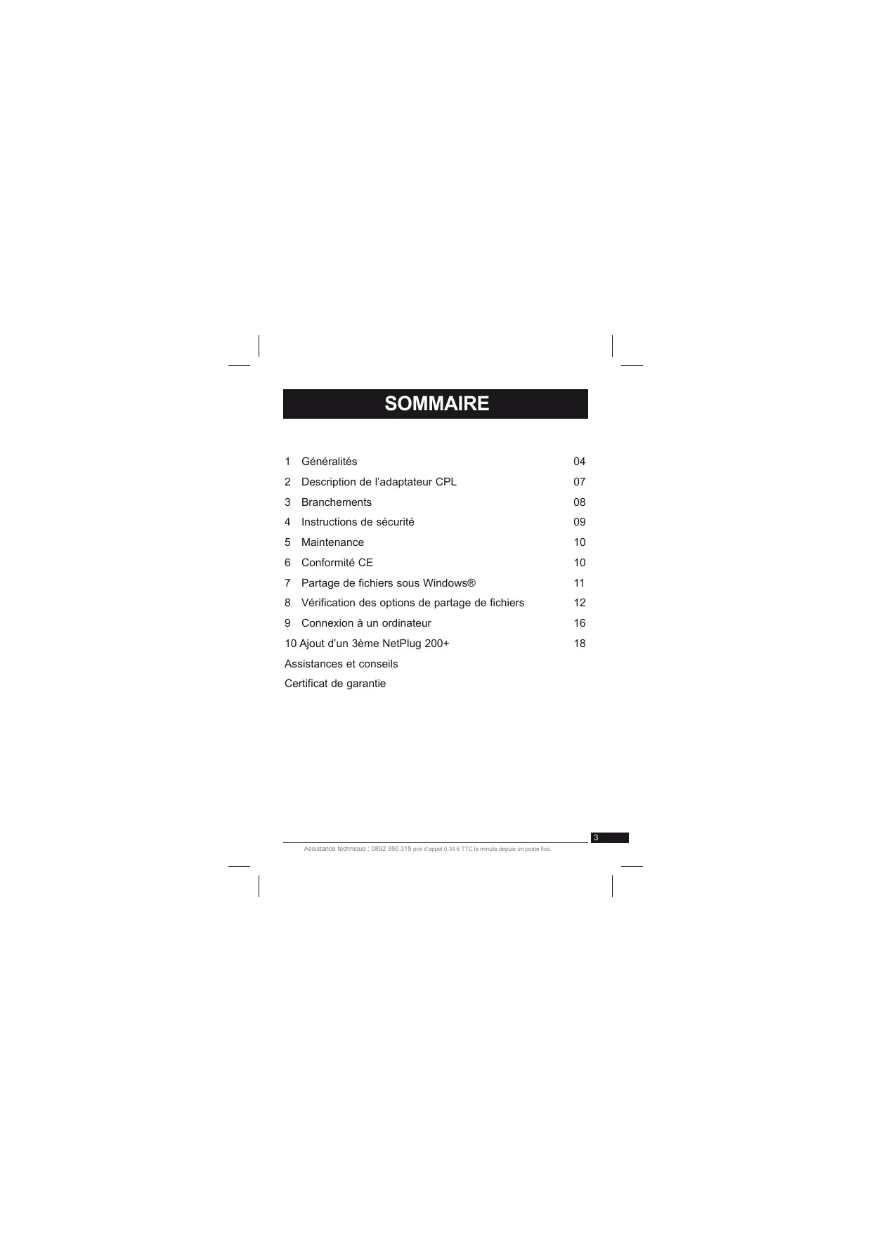 Assistance technique : 0892 350 315 prix d’appel 0,34 € TTC la minute depuis un poste fixe.