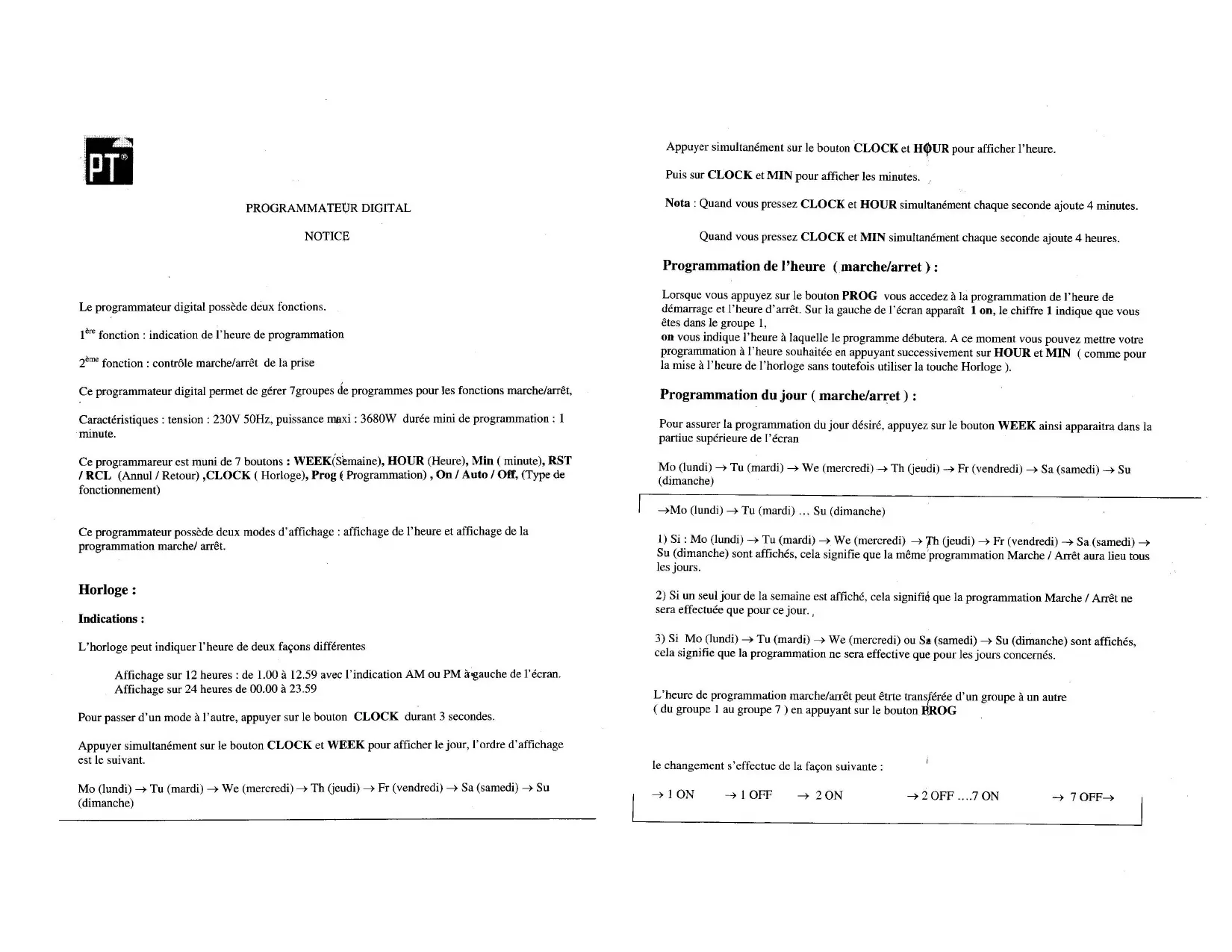 PROGRAMMATEUR DIGITAL REF 560561 - Programmateur digital PT - Notice d'utilisation et mode d'emploi gratuit