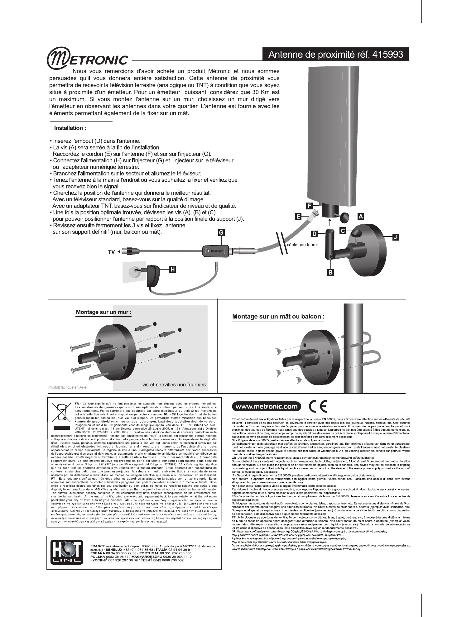 Retrouvez gratuitement la notice de l'appareil EXTERIEURE UHF VHF EXTRA PLATE METRONIC au format PDF.