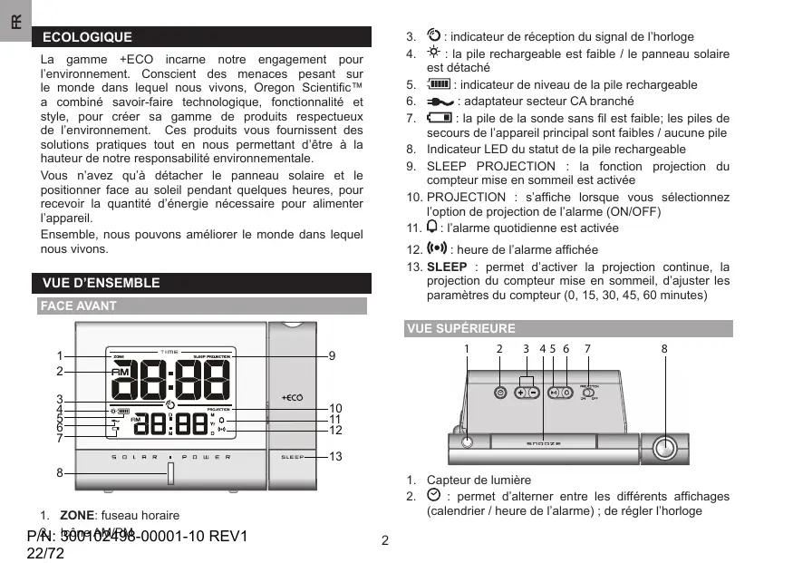 RM336PESU - Réveil projection solaire OREGON - Notice d'utilisation et mode d'emploi gratuit