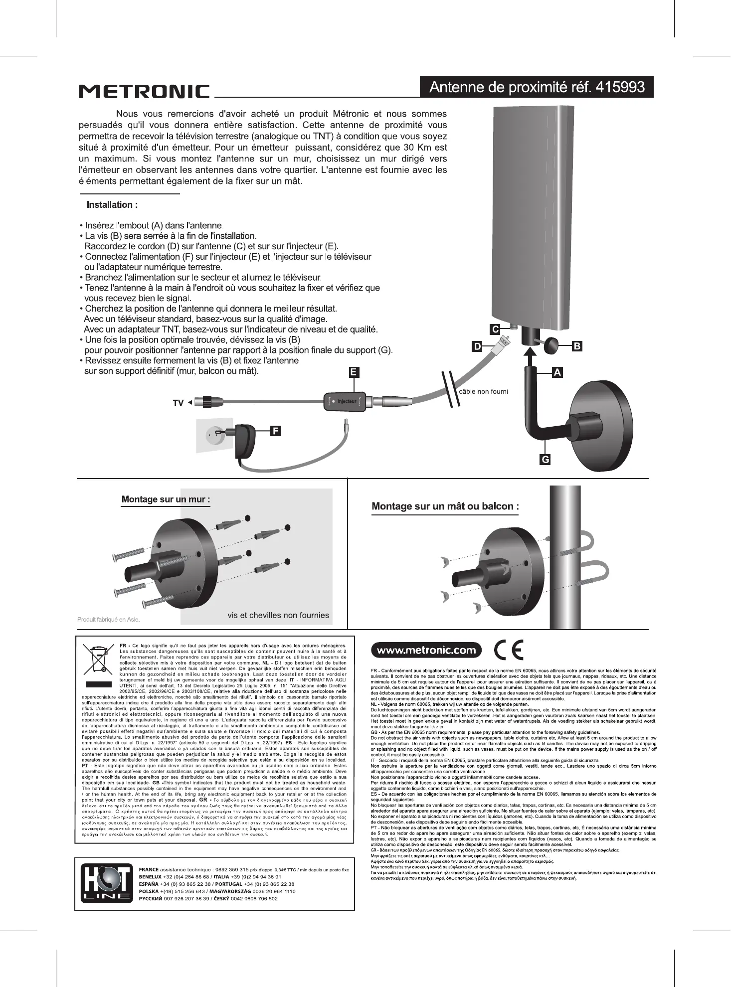 Retrouvez gratuitement la notice de l'appareil ANTENNE EXTERIEURE UHF-VHF EXTRA PLATE METRONIC au format PDF.