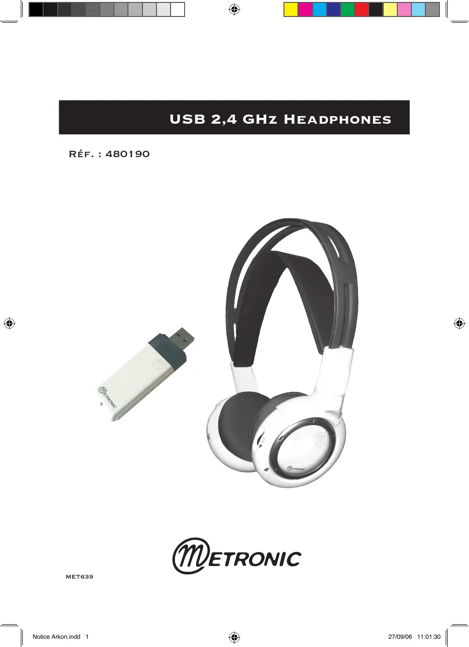 USB 2,4 GHz Headphones Réf. : 480190 MET639 Notice Arkon.indd 1 27/09/06 11:01:30 Notice Arkon.indd 2 27/09/06 11:01:31 Casque numérique USB référence 480190