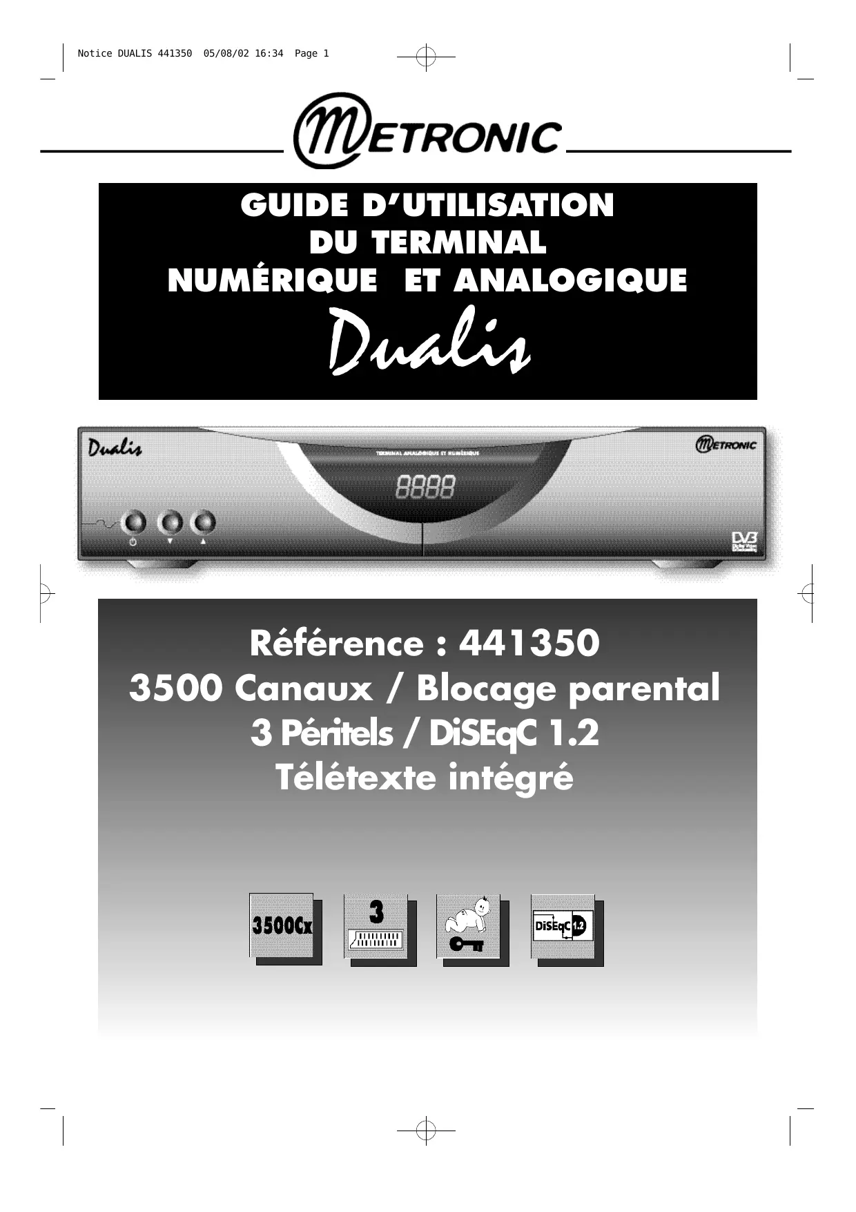 Dualis Référence : 441350 3500 Canaux / Blocage parental 3 Péritels / DiSEqC 1.2 Télétexte intégré Notice DUALIS 441350 05/08/02 16:34 Page 2