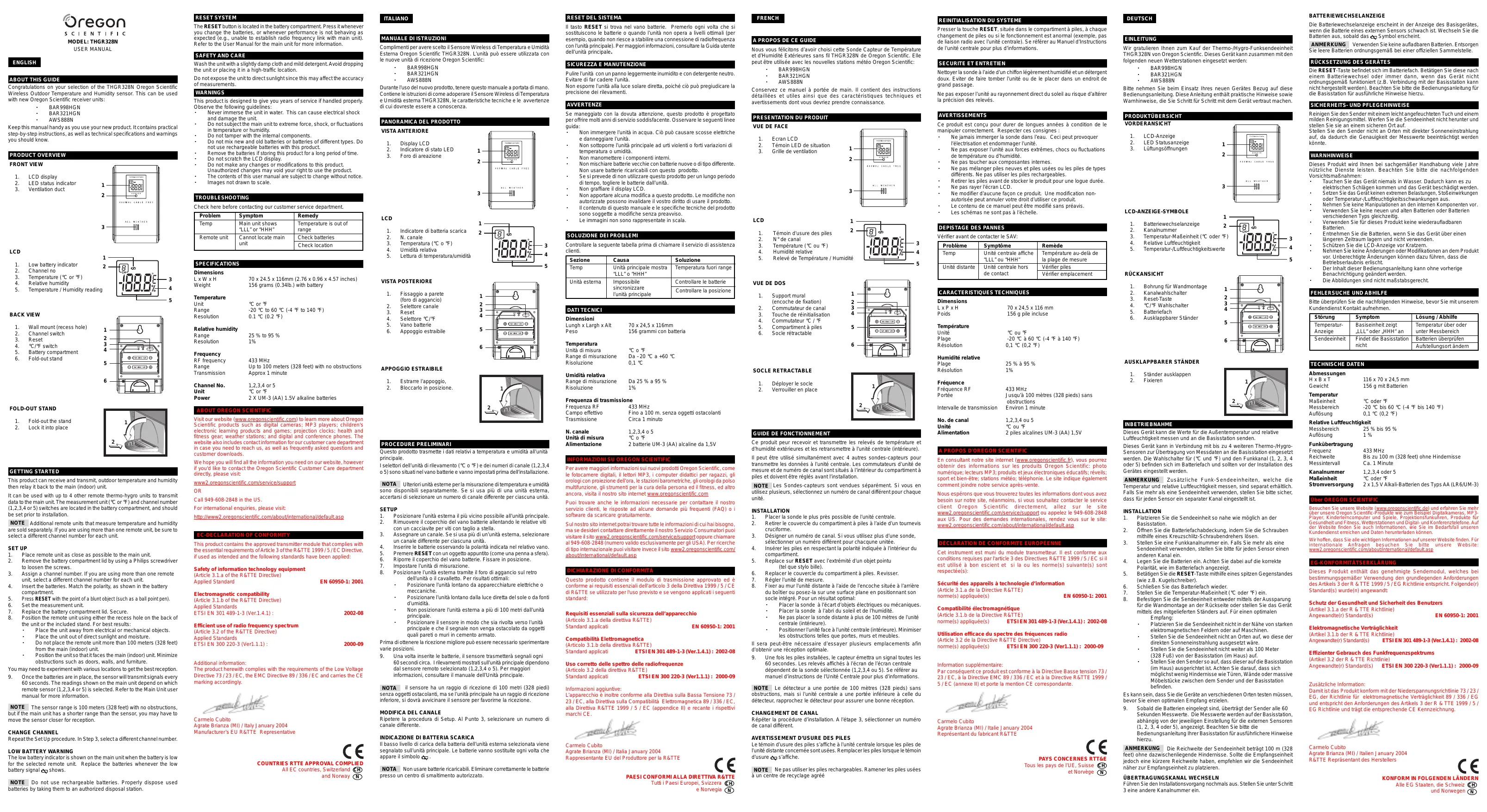 Retrouvez gratuitement la notice de l'appareil THGR328N OREGON au format PDF.