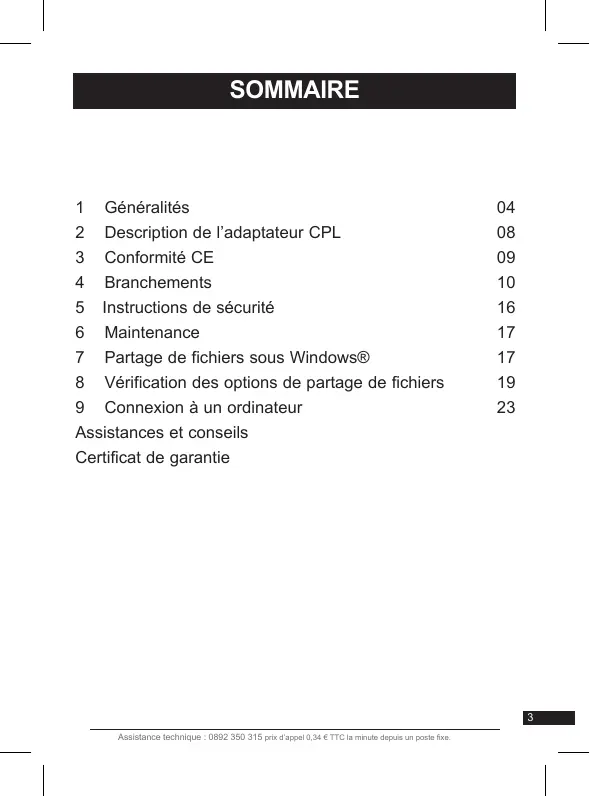 Référence : 495205 Bloc multiprise avec module CPL NetStrip 200+ MET924 SOMMAIRE 1 Généralités 2 Description de l’adaptateur CPL 3 Conformité CE 4 Branchements 5 Instructions de sécurité 6 Maintenance 7 Partage de fichiers sous Windows® 8 Vérification des options de partage de fichiers 9 Connexion à un ordinateur Assistances et conseils Certificat de garantie