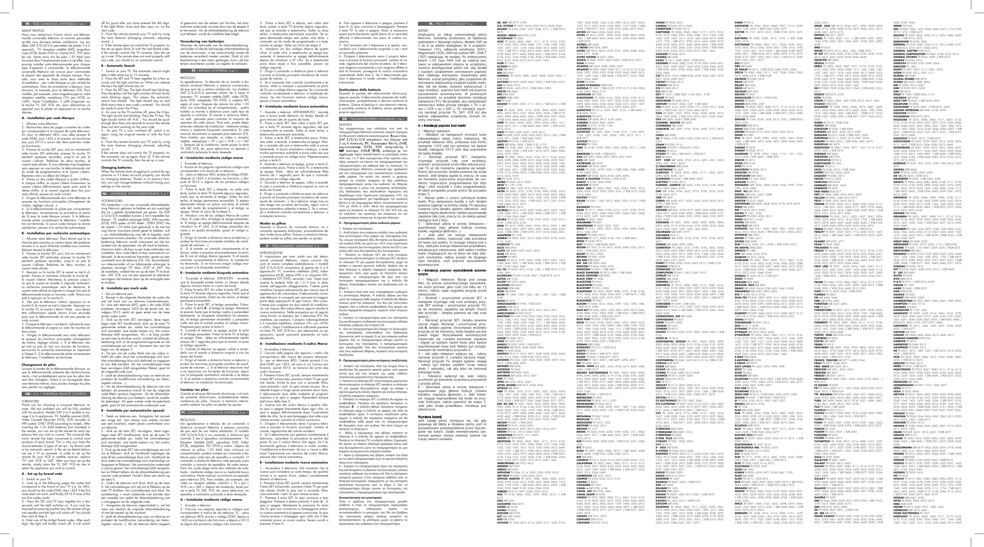 le téléviseur, recommencez la procédure (à partir de 3) avec le code Marque suivant. Si la télécommande pilote correctement le téléviseur, l’installation est terminée. Si aucun code marque ne donne satisfaction, passez à la recherche automatique.