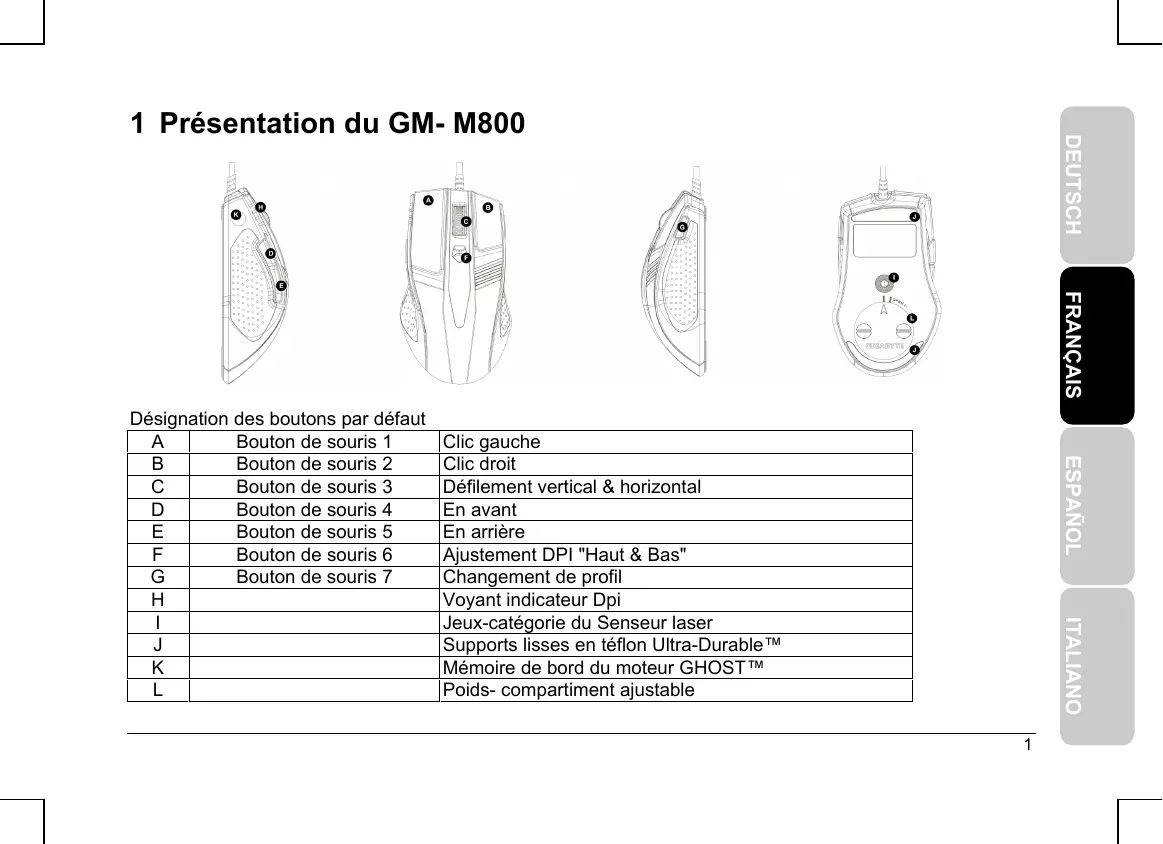 A Bouton de souris 1 B Bouton de souris 2 C Bouton de souris 3 D Bouton de souris 4 E Bouton de souris 5 F Bouton de souris 6 G Bouton de souris 7 H I J K L