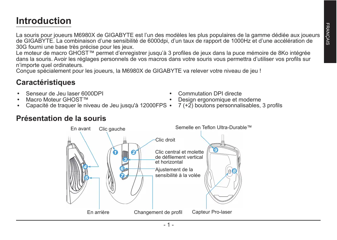 M6980X - Souris Gaming GIGABYTE - Notice d'utilisation et mode d'emploi gratuit