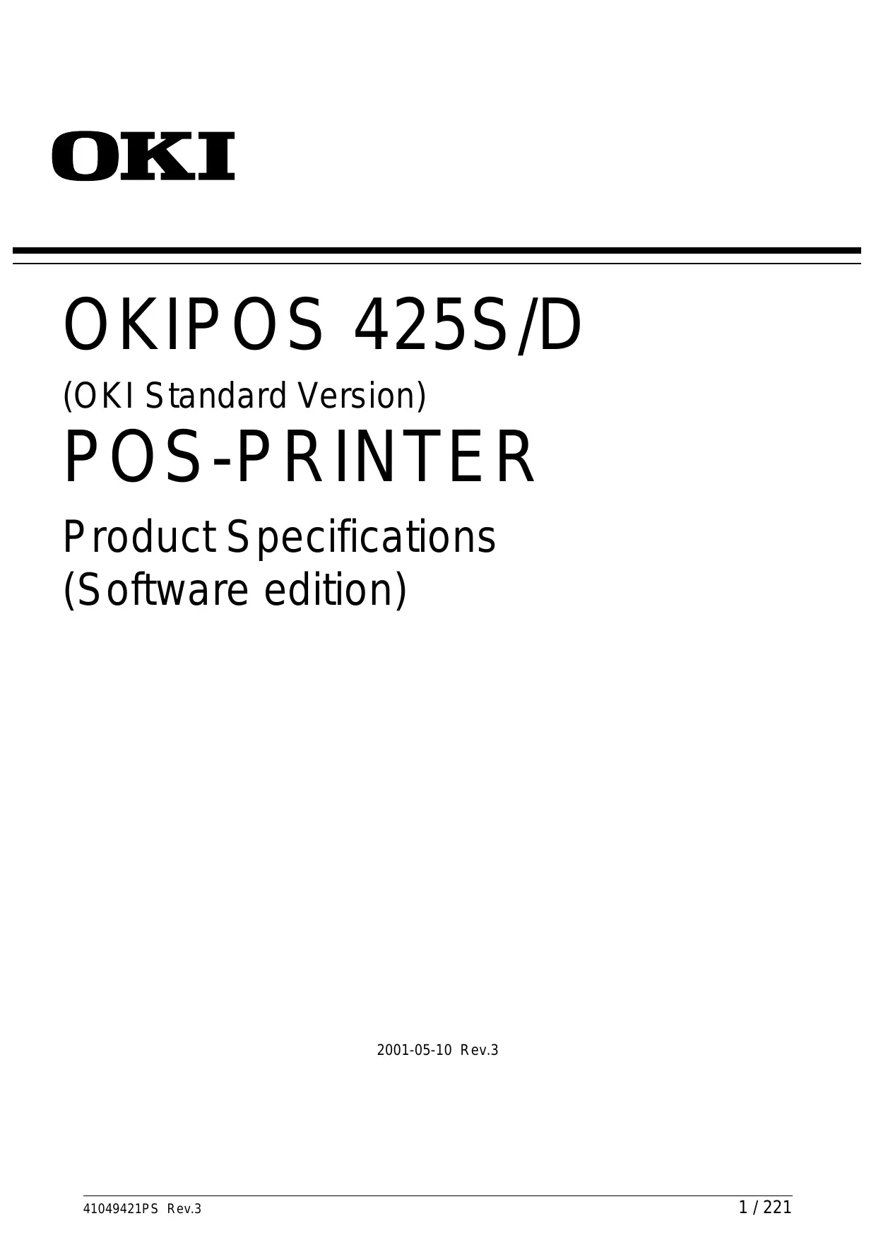 POS425S - Imprimante de reçus OKI - Notice d'utilisation et mode d'emploi gratuit