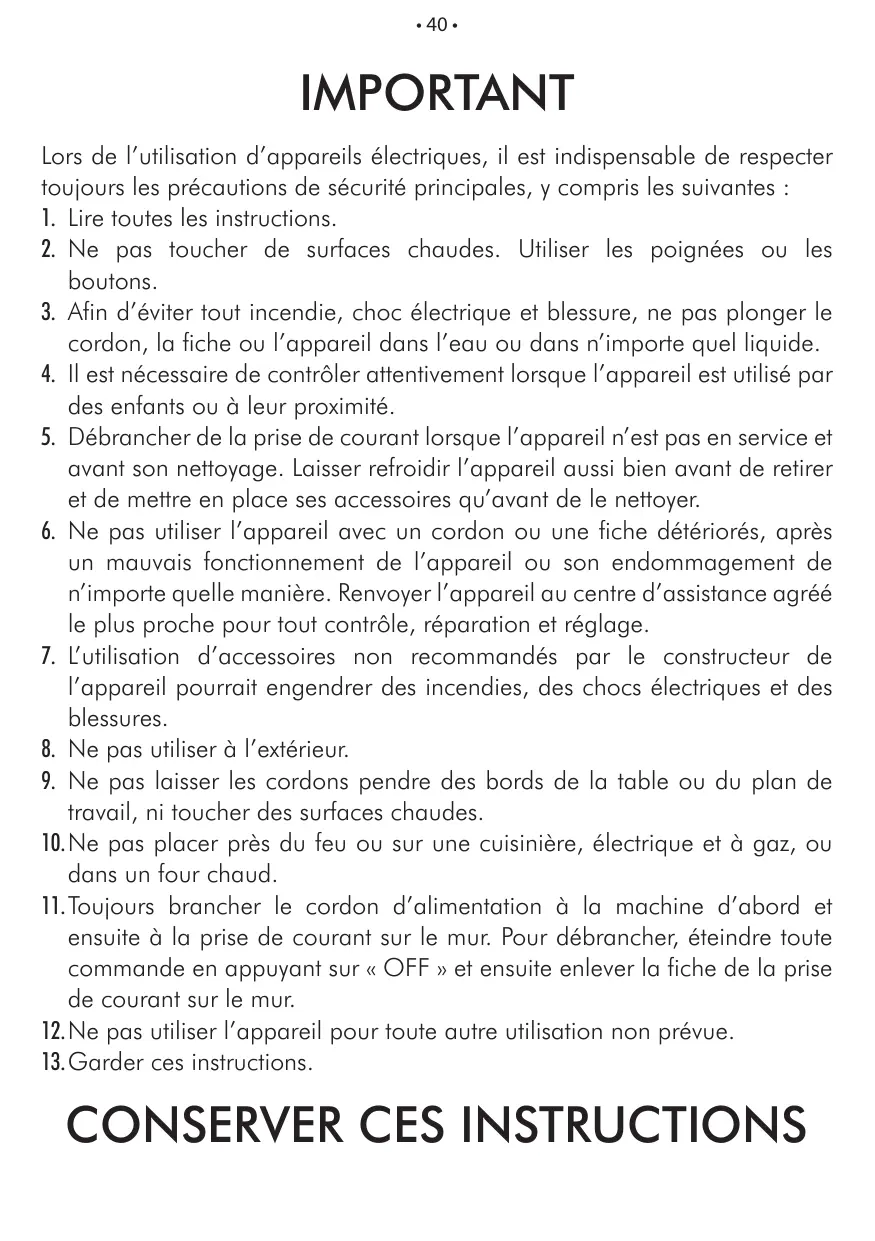 | Entretien et nettoyage | Programme de nettoyage automatique, pièces amovibles compatibles lave-vaisselle |