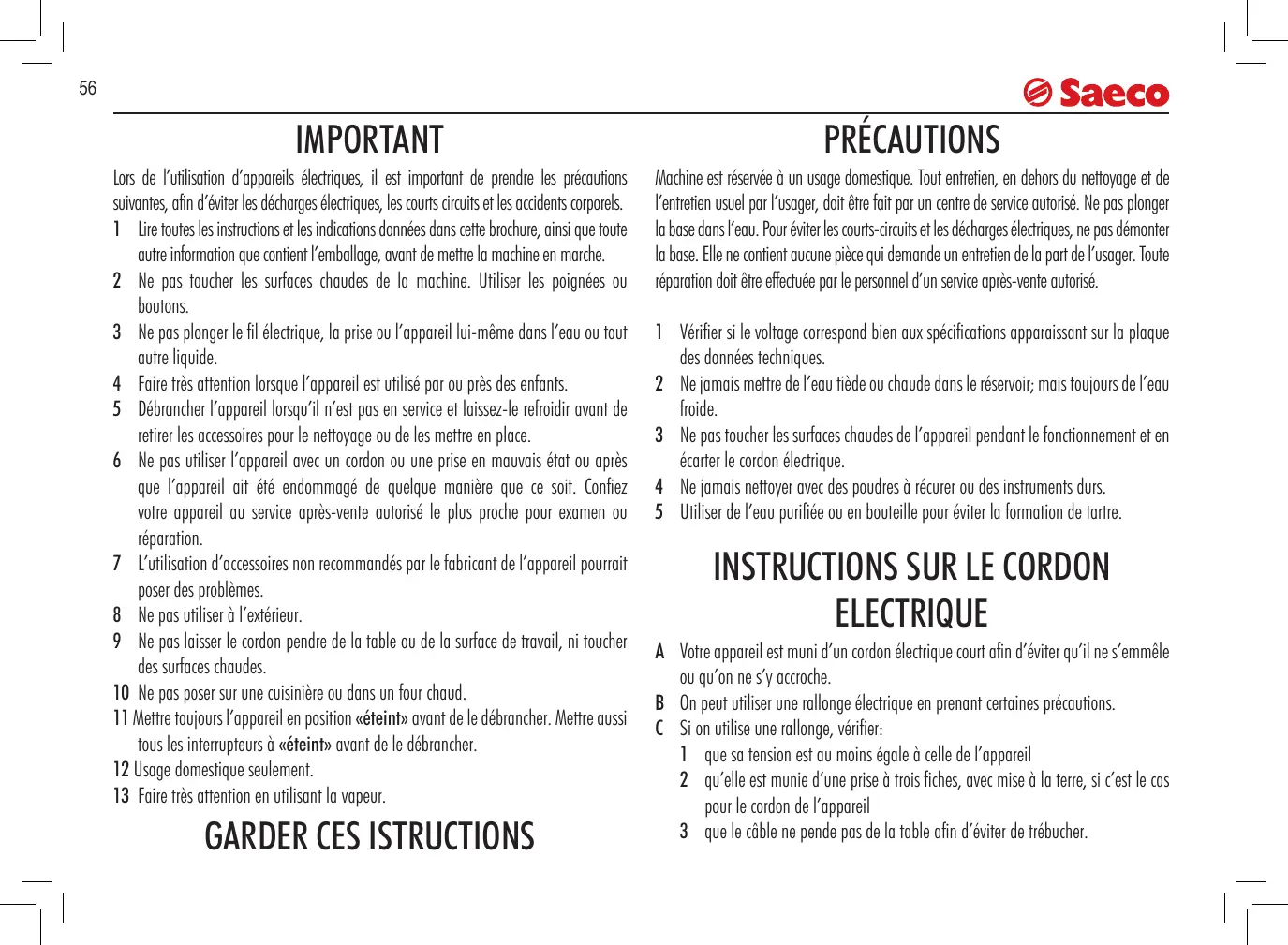 INCANTO - Machine à café SAECO - Notice d'utilisation et mode d'emploi gratuit
