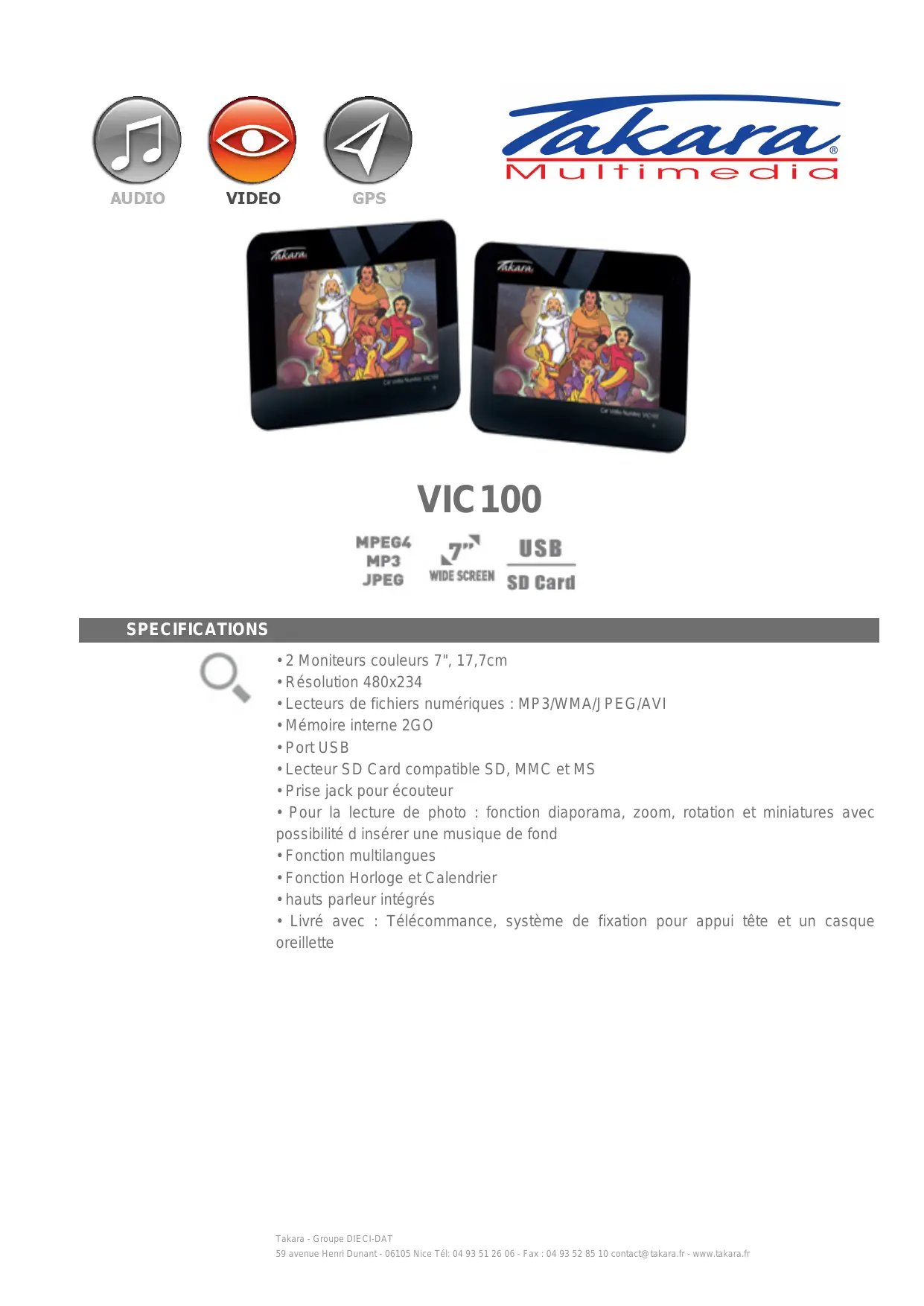 VIC100 - Lecteur multimédia portable TAKARA - Notice d'utilisation et mode d'emploi gratuit