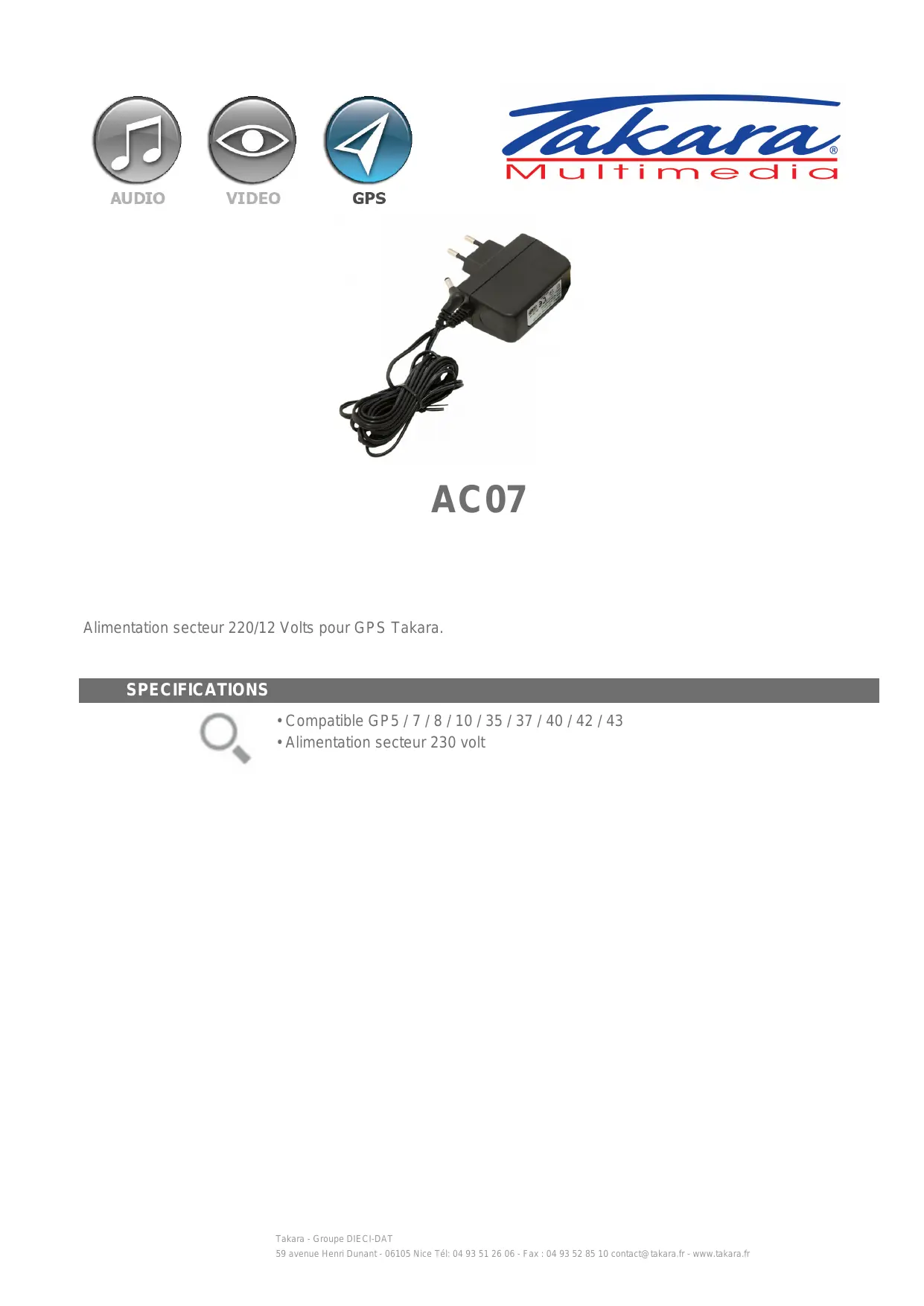 | Compatibilité | GPS Takara modèles 5, 7, 8, 10, 35, 37, 40, 42, 43 |