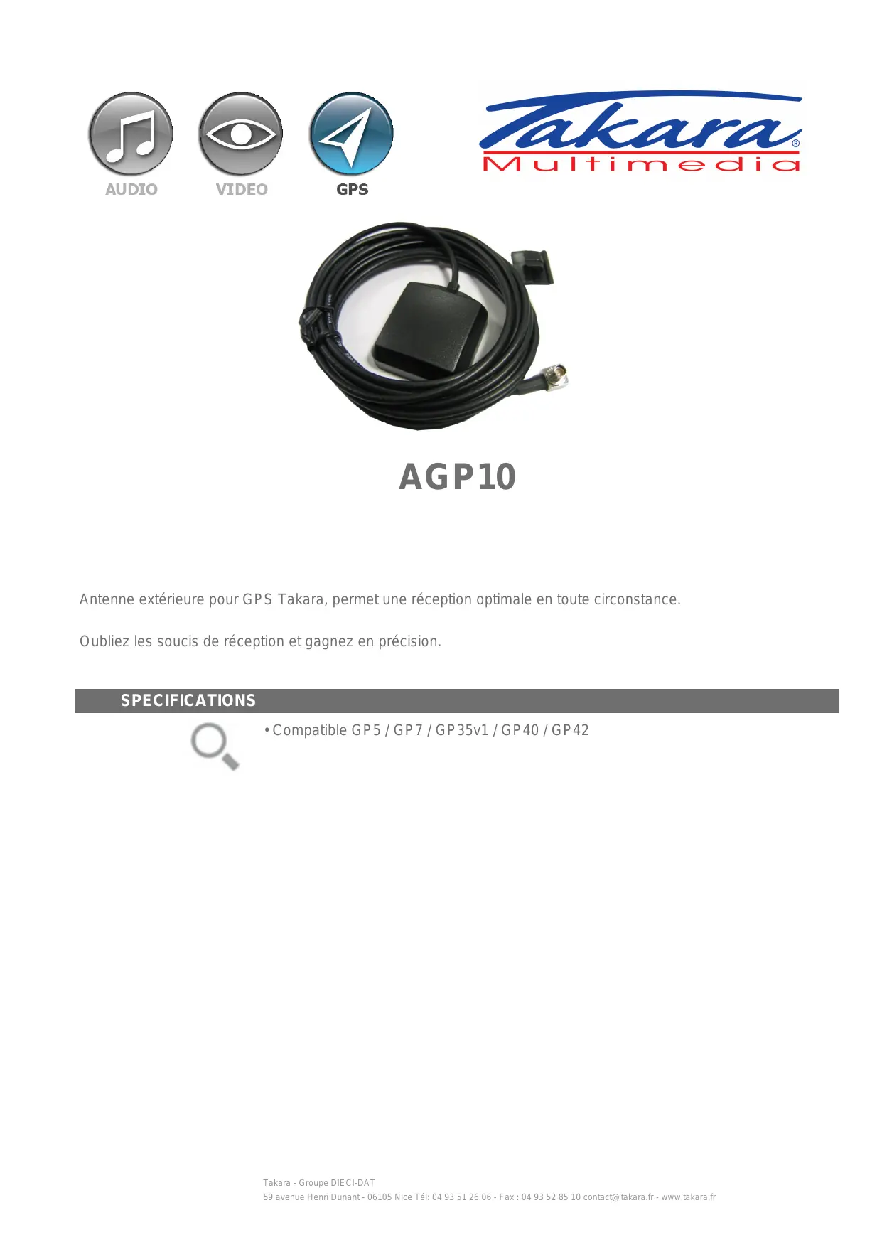 AGP10 - Antenne GPS TAKARA - Notice d'utilisation et mode d'emploi gratuit