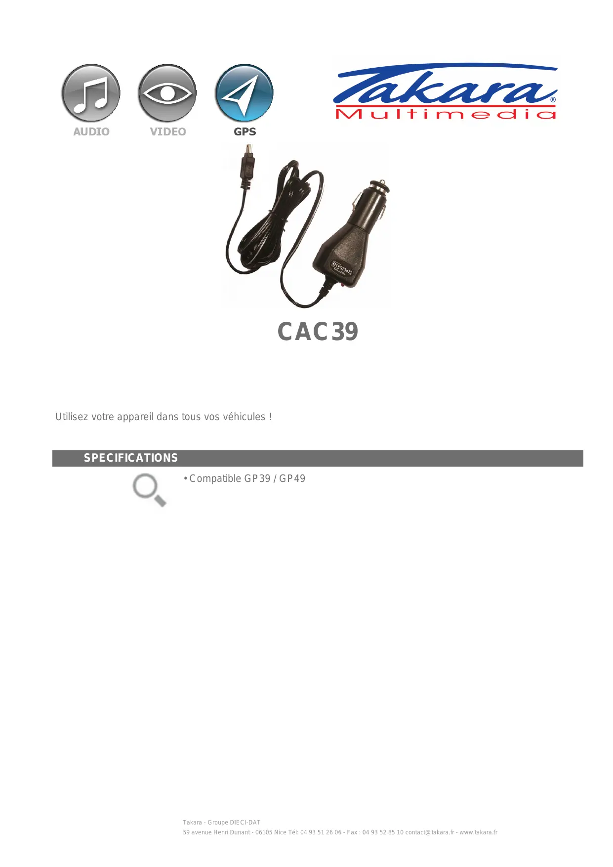 CAC39 - Accessoire électronique pour véhicule TAKARA - Notice d'utilisation et mode d'emploi gratuit