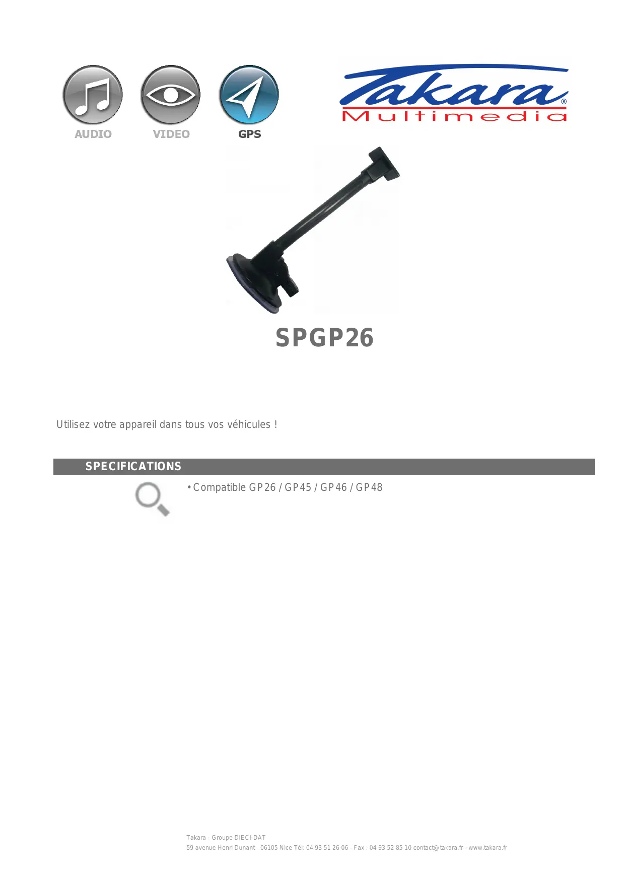 SPGP26 - Accessoire multimédia pour véhicule TAKARA - Notice d'utilisation et mode d'emploi gratuit