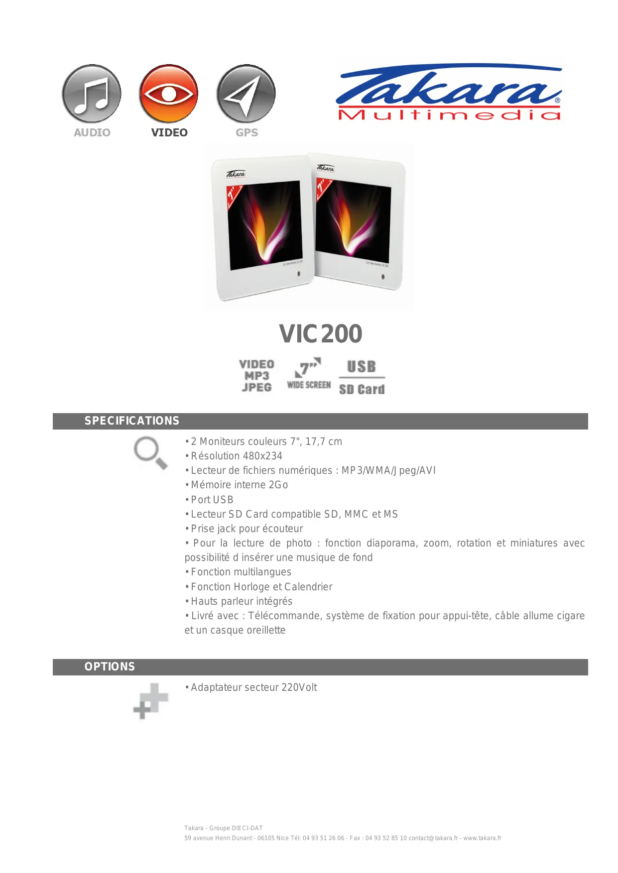 VIC200 - Écran multimédia TAKARA - Notice d'utilisation et mode d'emploi gratuit