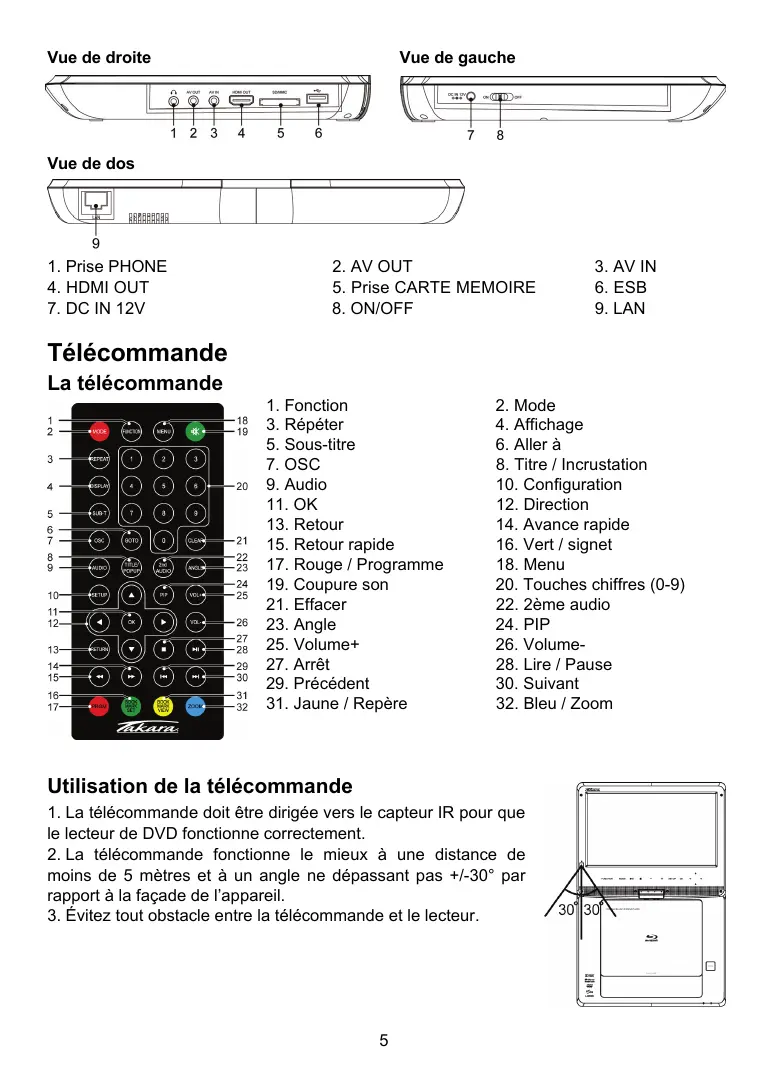 BD10 - Lecteur dvd/blu-ray portable TAKARA - Notice d'utilisation et mode d'emploi gratuit