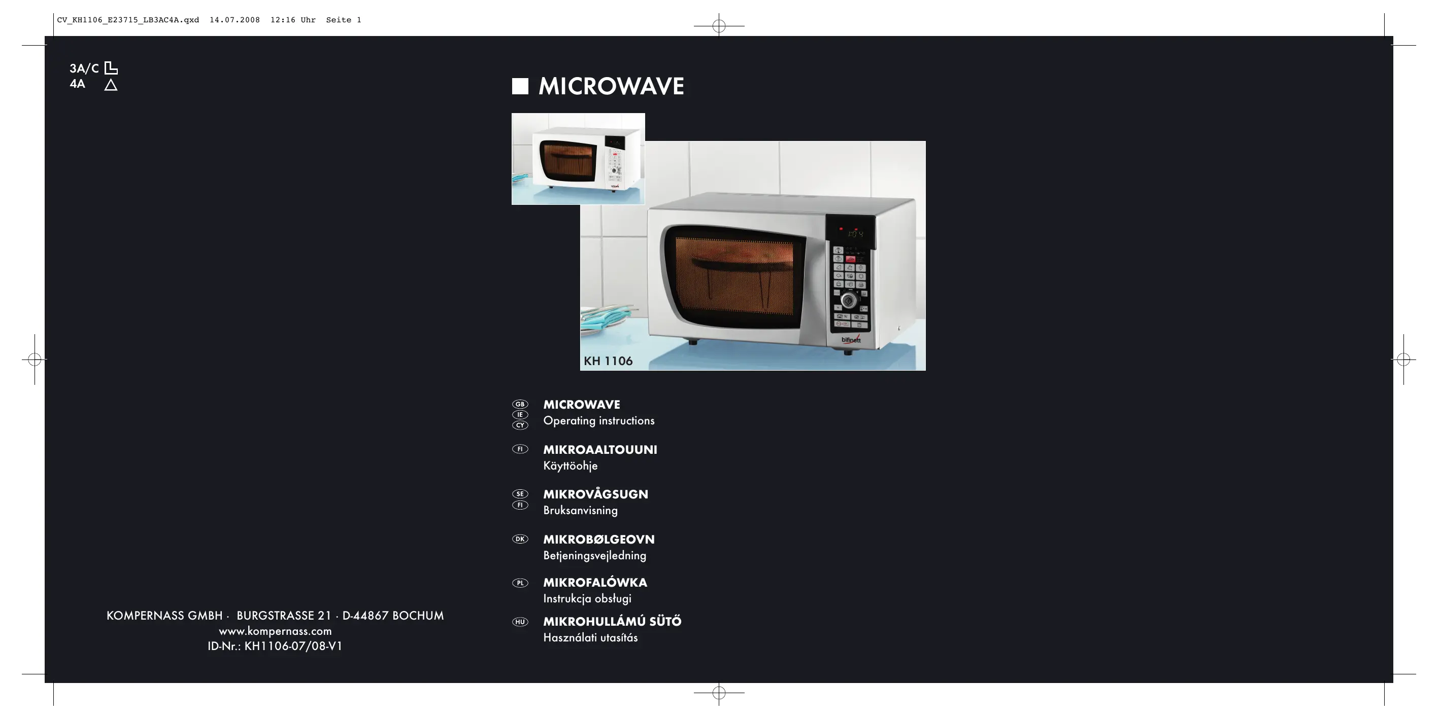 Retrouvez gratuitement la notice de l'appareil KH 1106 MICROWAVE BIFINETT au format PDF.