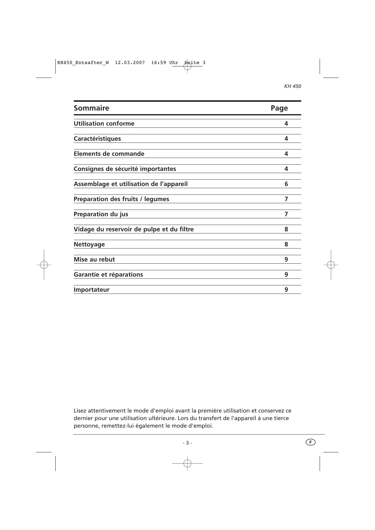 MODE D'EMPLOI KH 450 BIFINETT