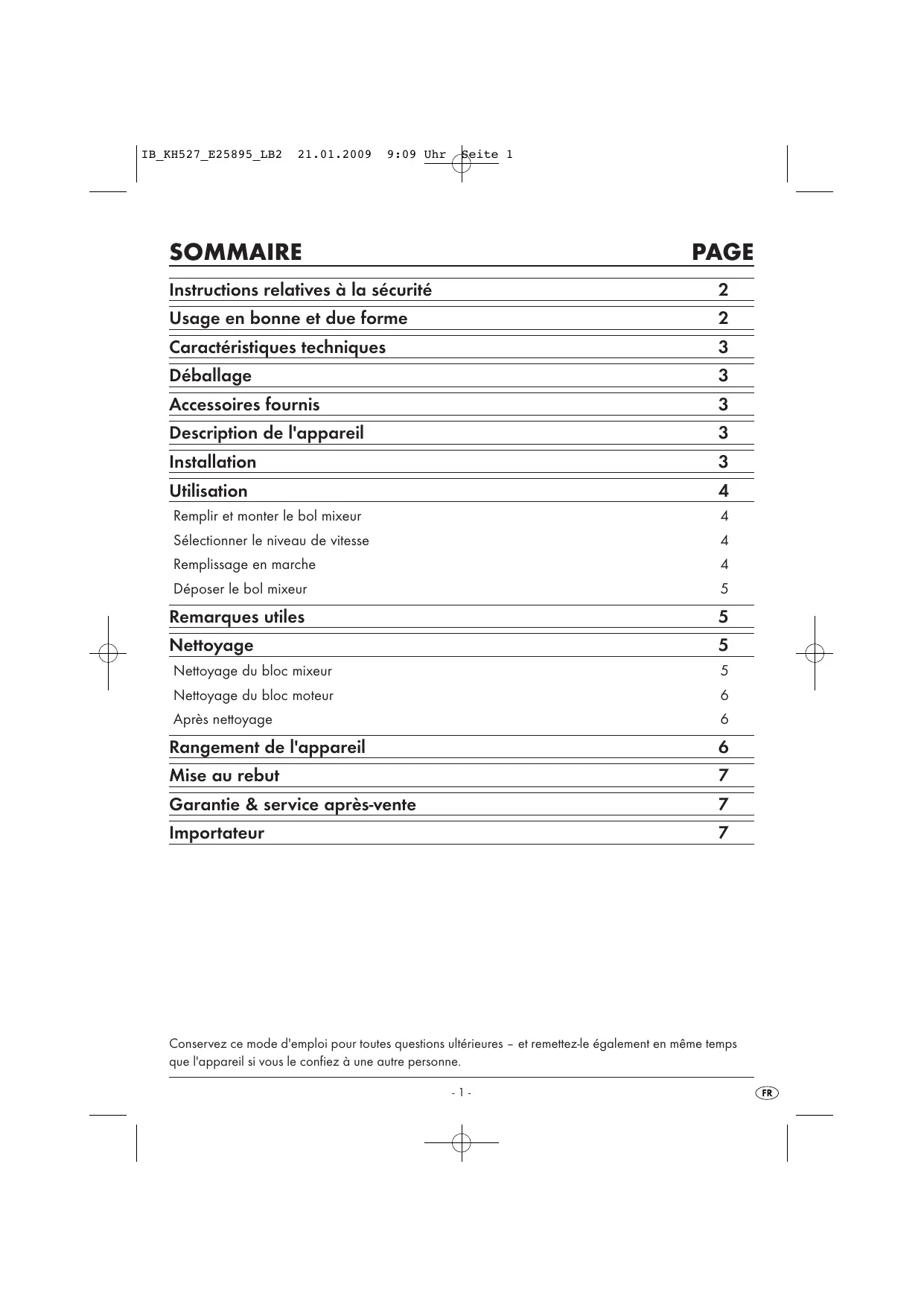 Conservez ce mode d'emploi pour toutes questions ultérieures – et remettez-le également en même temps que l'appareil si vous le confiez à une autre personne. -1-