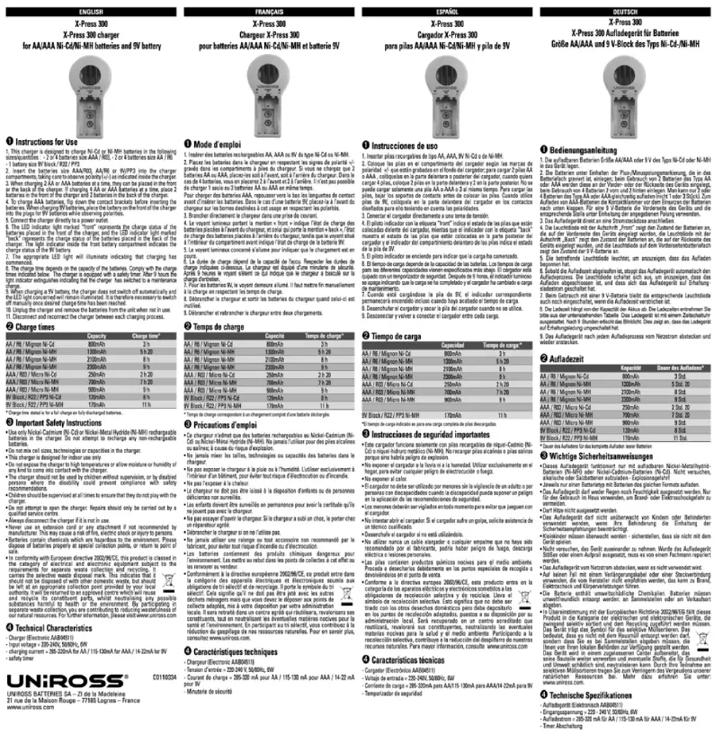 X-PRESS 300 - Chargeur de piles UNIROSS - Notice d'utilisation et mode d'emploi gratuit