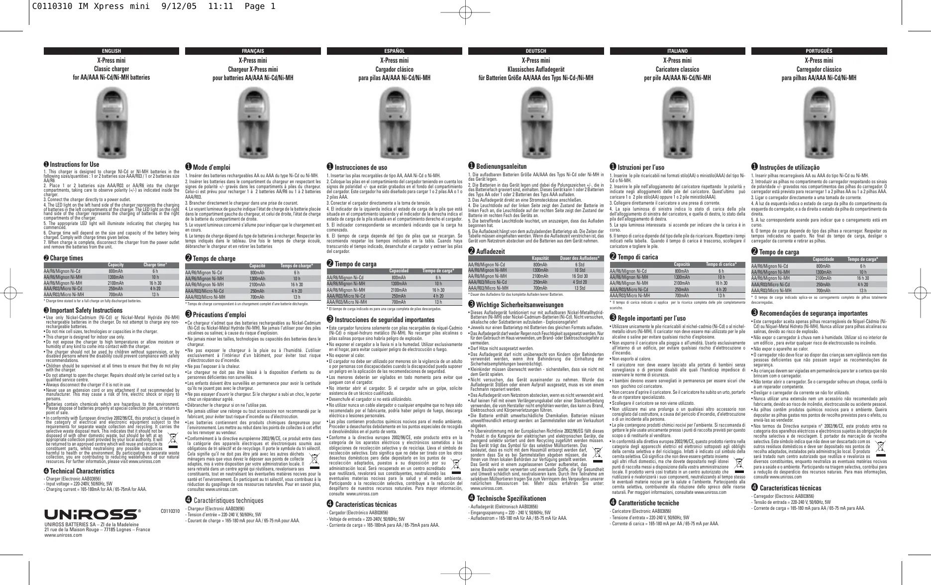 X-PRESS MINI - Chargeur de batteries UNIROSS - Notice d'utilisation et mode d'emploi gratuit