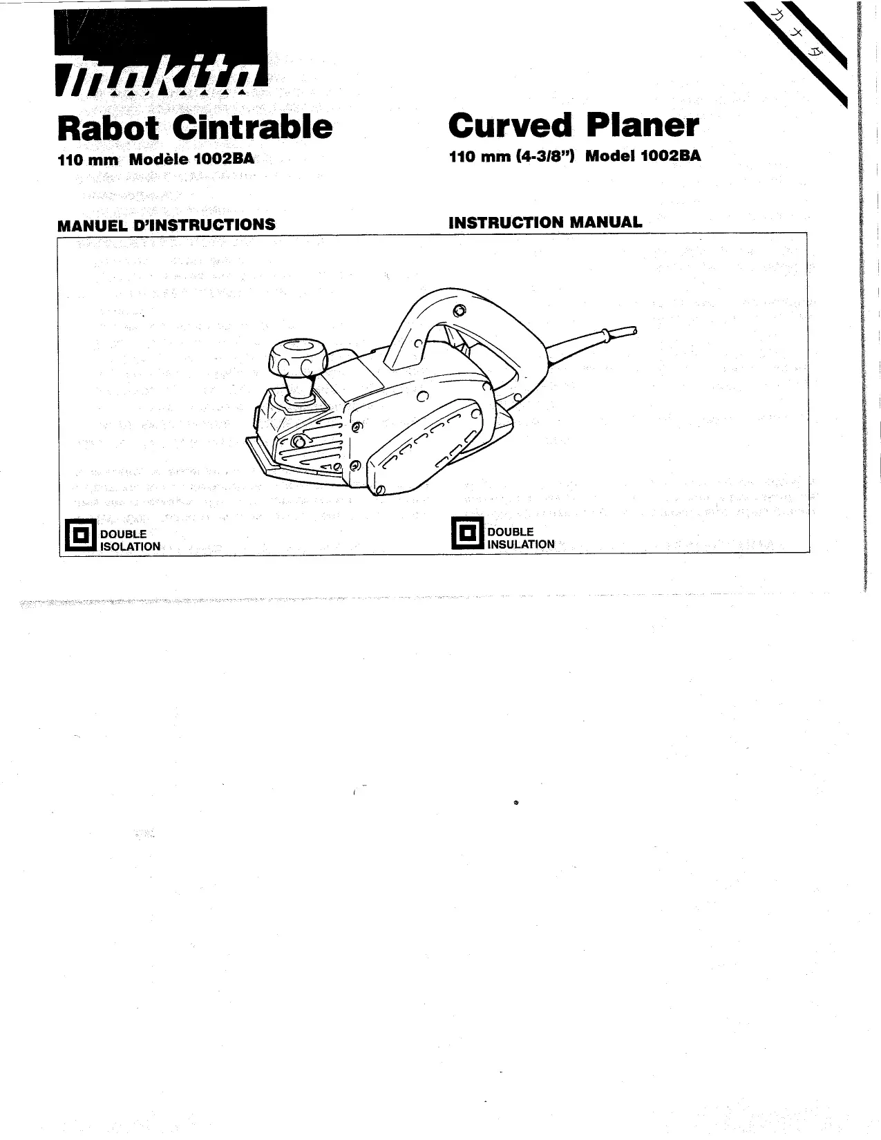 1002 BA - Raboteuse électrique MAKITA - Notice d'utilisation et mode d'emploi gratuit