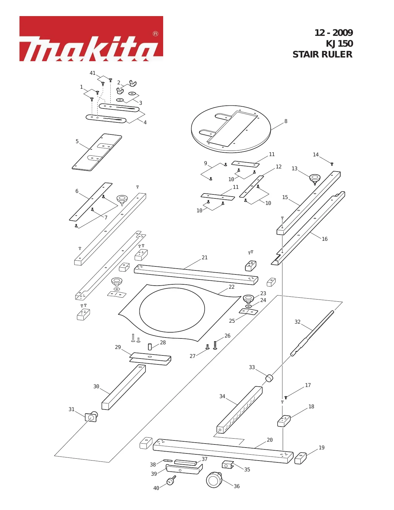 Les pièces de rechange pour le MAKITA KJ150 peuvent être trouvées chez des revendeurs agréés Makita ou sur le site officiel de Makita.