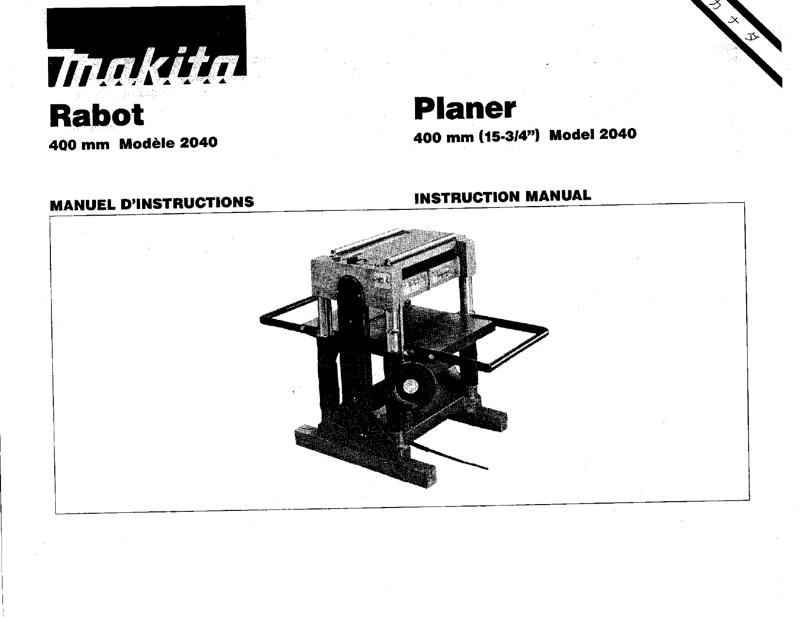 Téléchargez la notice de votre Raboteuse électrique au format PDF gratuitement ! Retrouvez votre notice 2040 - MAKITA et reprennez votre appareil électronique en main. Sur cette page sont publiés tous les documents nécessaires à l'utilisation de votre appareil 2040 de la marque MAKITA.