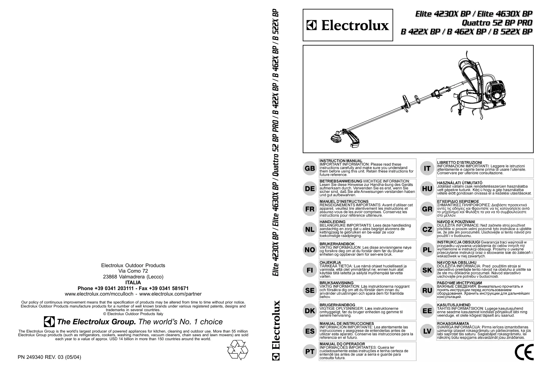 Retrouvez gratuitement la notice de l'appareil ELITE 4230 X BP PRO MCCULLOCH au format PDF.