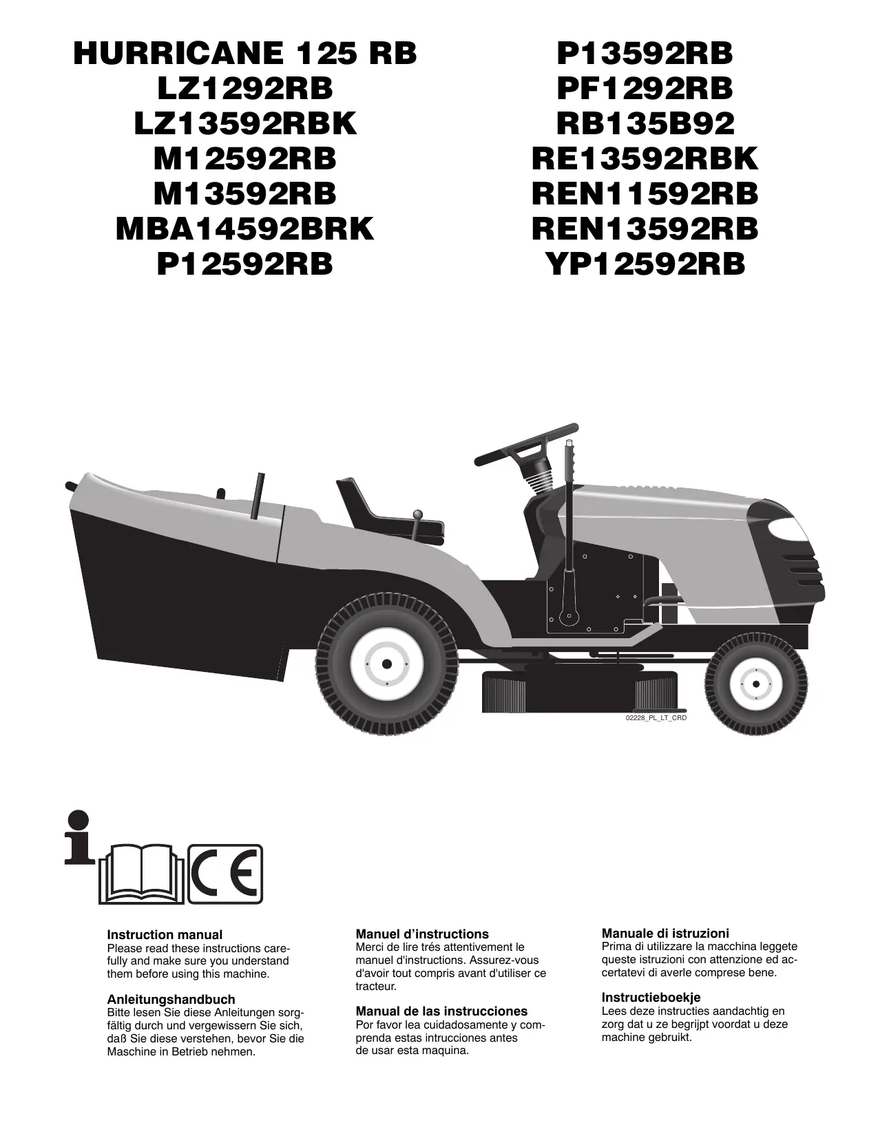 P13592RB - Tondeuse autoportée MCCULLOCH - Notice d'utilisation et mode d'emploi gratuit