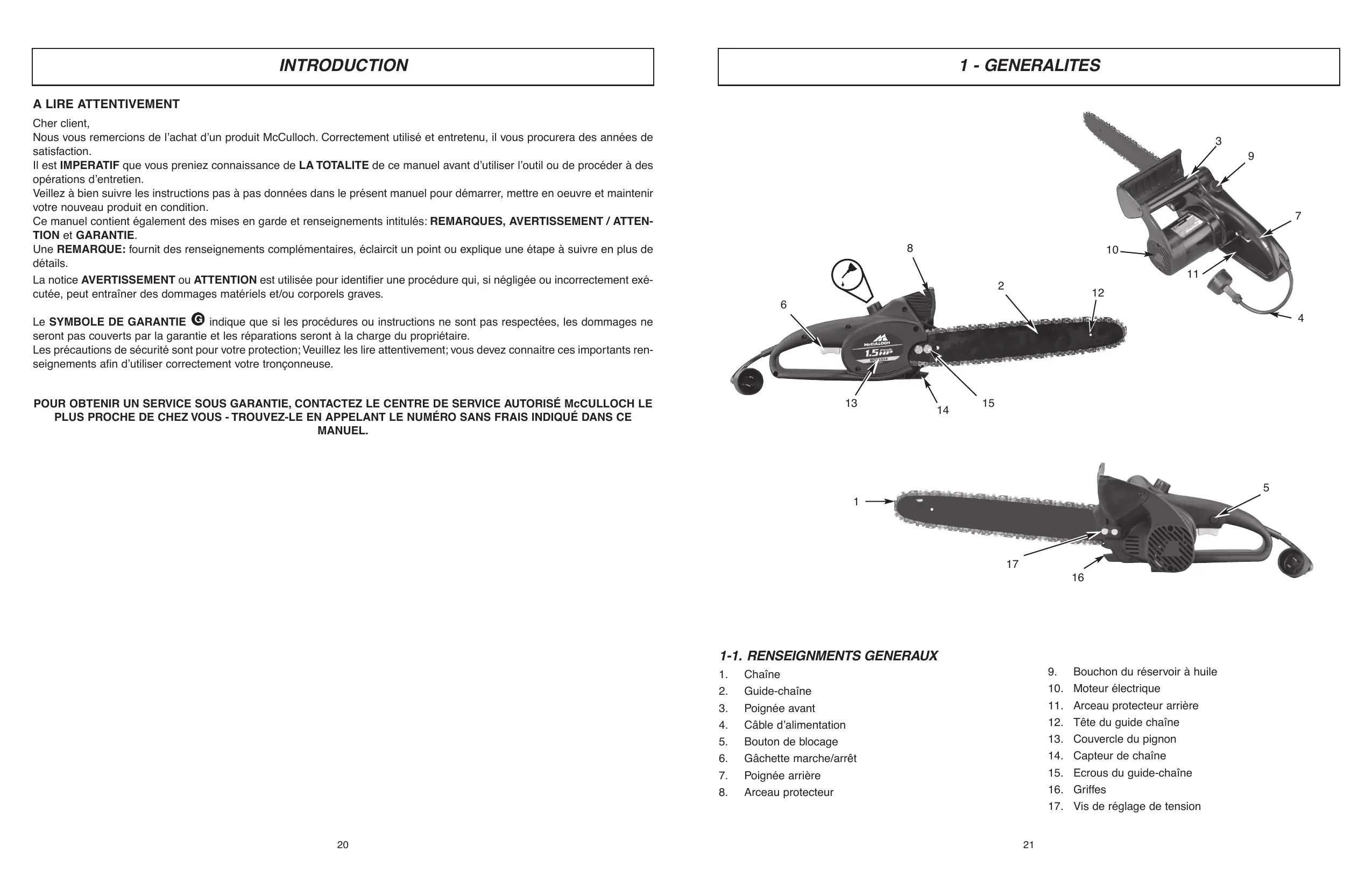 Nous vous remercions de l'achat d'un produit McCulloch. Correctement utilisé et entretenu, il vous procurera des années de satisfaction.