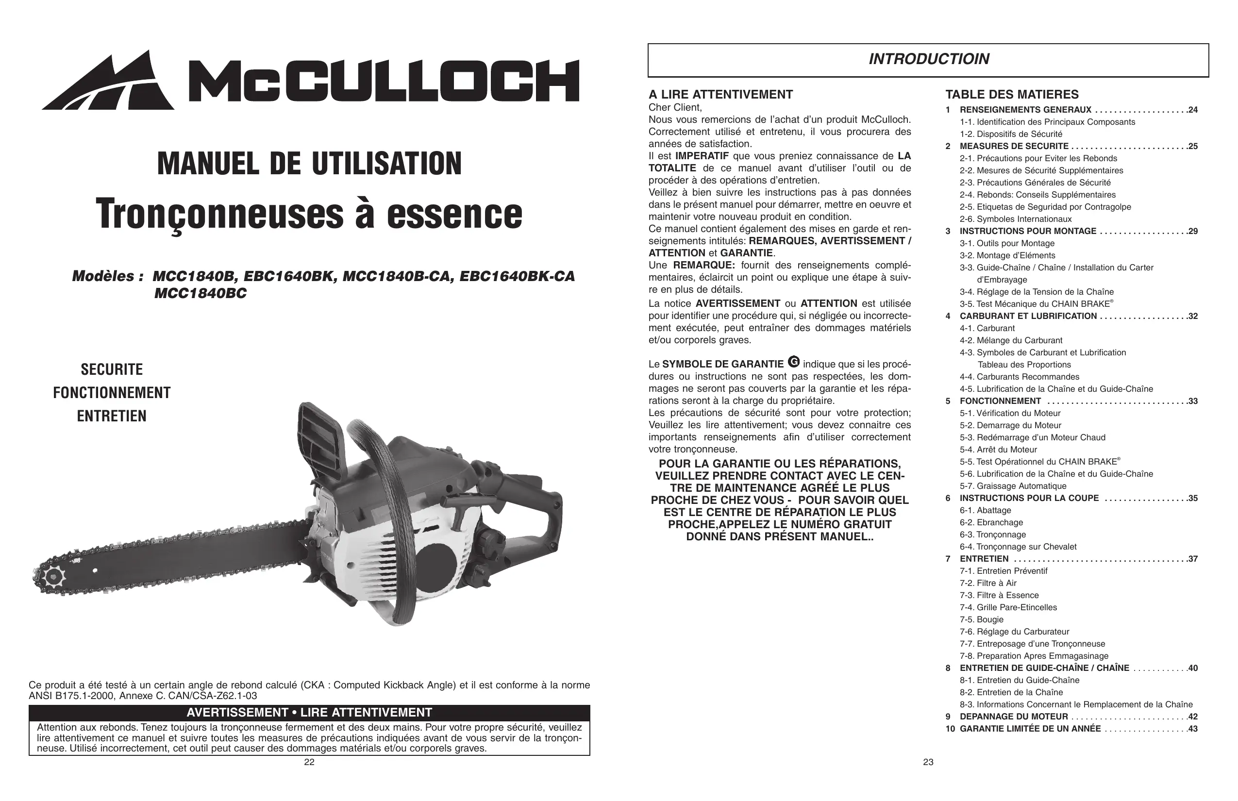 MODE D'EMPLOI MCC1840B MCCULLOCH