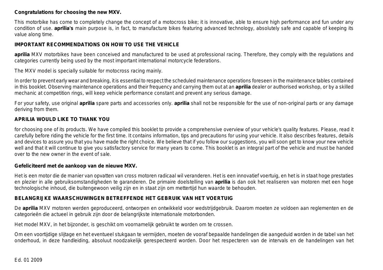 MXV 4.5 - Moto tout-terrain APRILIA - Notice d'utilisation et mode d'emploi gratuit