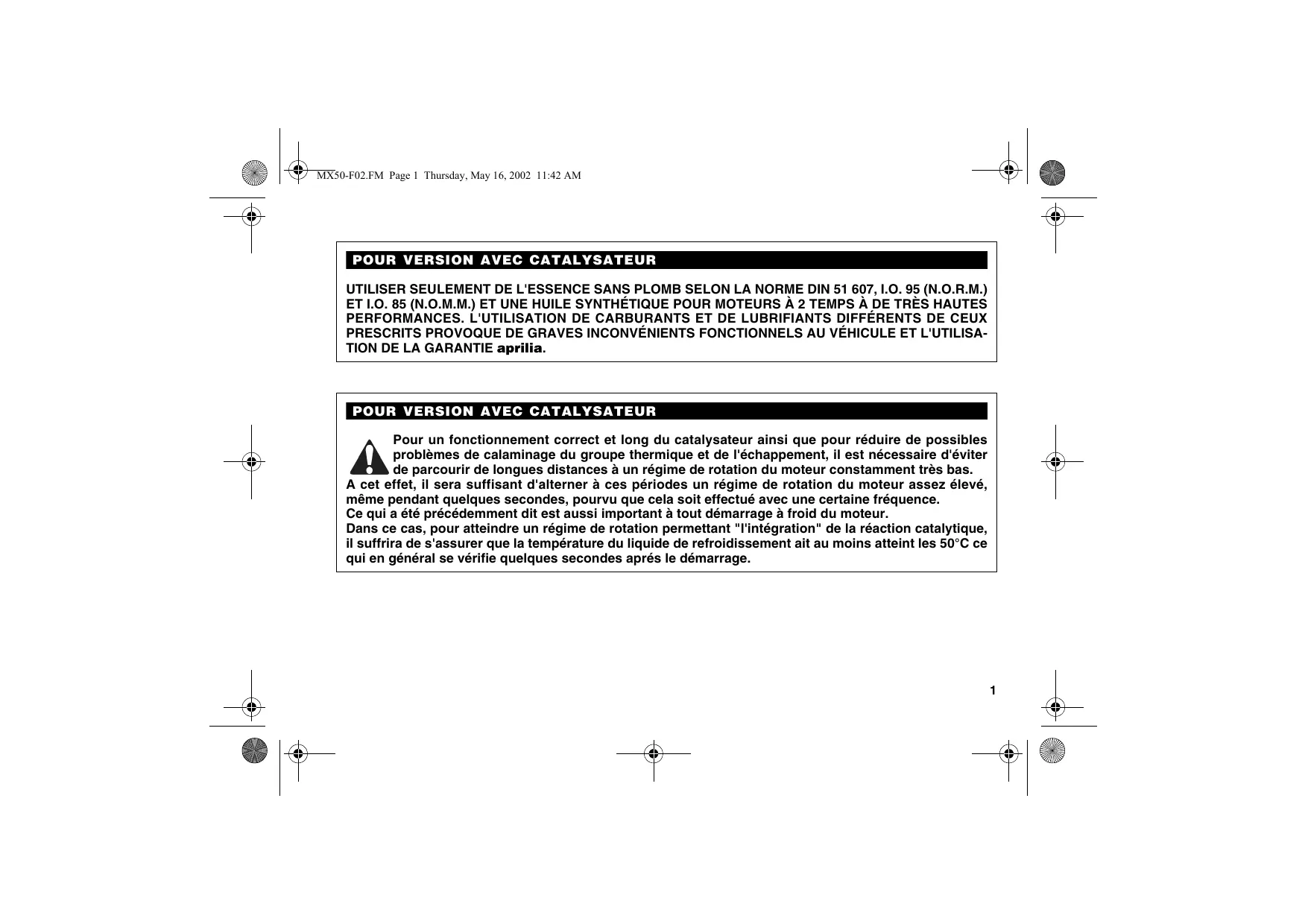 Retrouvez gratuitement la notice de l'appareil MX 50 APRILIA au format PDF.