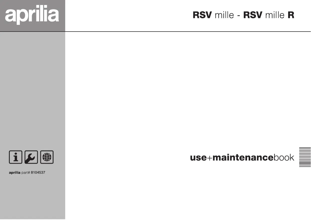 Téléchargez la notice de votre Moto sportive au format PDF gratuitement ! Retrouvez votre notice RSV MILLE R - APRILIA et reprennez votre appareil électronique en main. Sur cette page sont publiés tous les documents nécessaires à l'utilisation de votre appareil RSV MILLE R de la marque APRILIA.