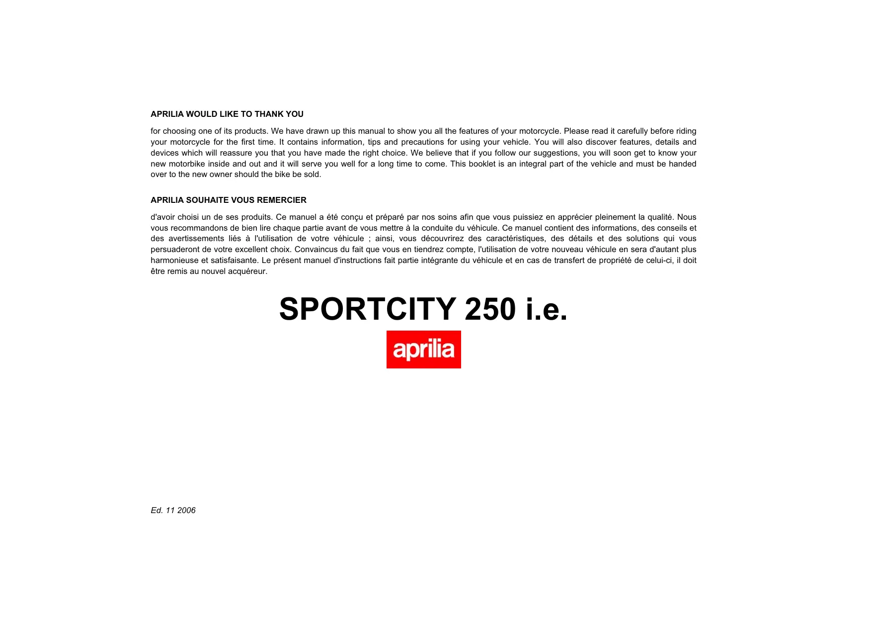 Retrouvez gratuitement la notice de l'appareil SPORTCITY 250 APRILIA au format PDF.