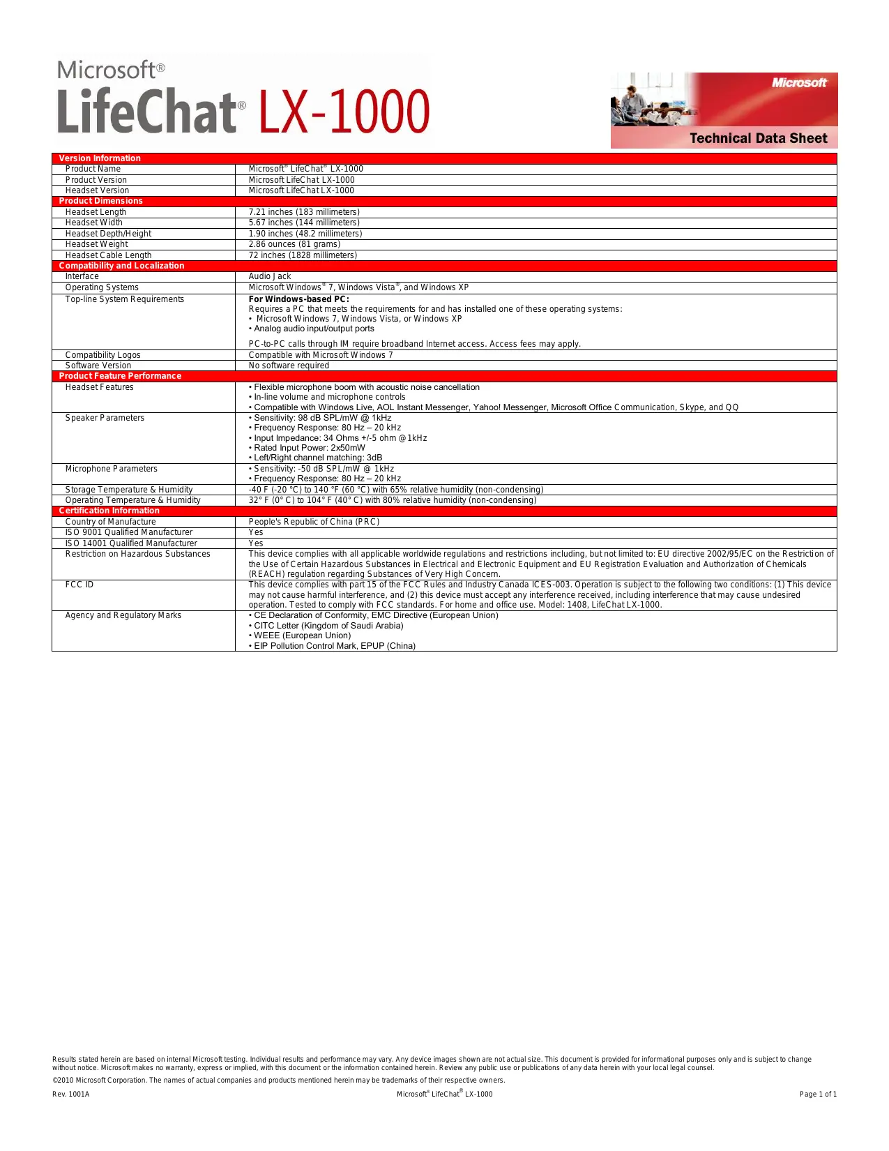 Retrouvez gratuitement la notice de l'appareil LIFECHAT LX-1000 MICROSOFT au format PDF.